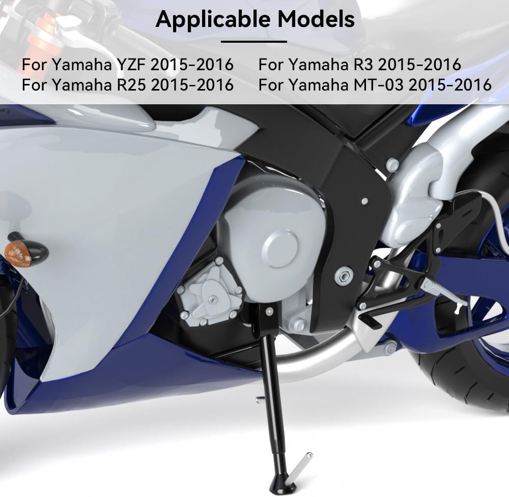 مسند دراجة نارية من Bruce & Shark - قابل للتعديل - ألومنيوم - حامل جانبي لـ Yamaha YZF R25 R3 MT-03 2015-2016 أسود