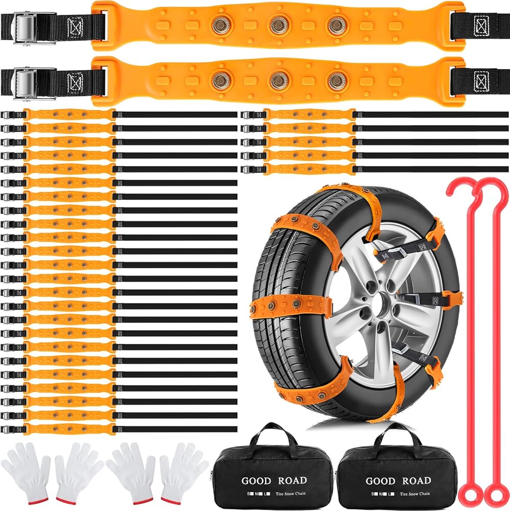 • Comprehensive Package: the package includes 30 anti-skid chains, enabling maximum coverage for safer driving; Additionally, it comes with two gloves, two hooks, and two storage bags, making installation easy and storage convenient