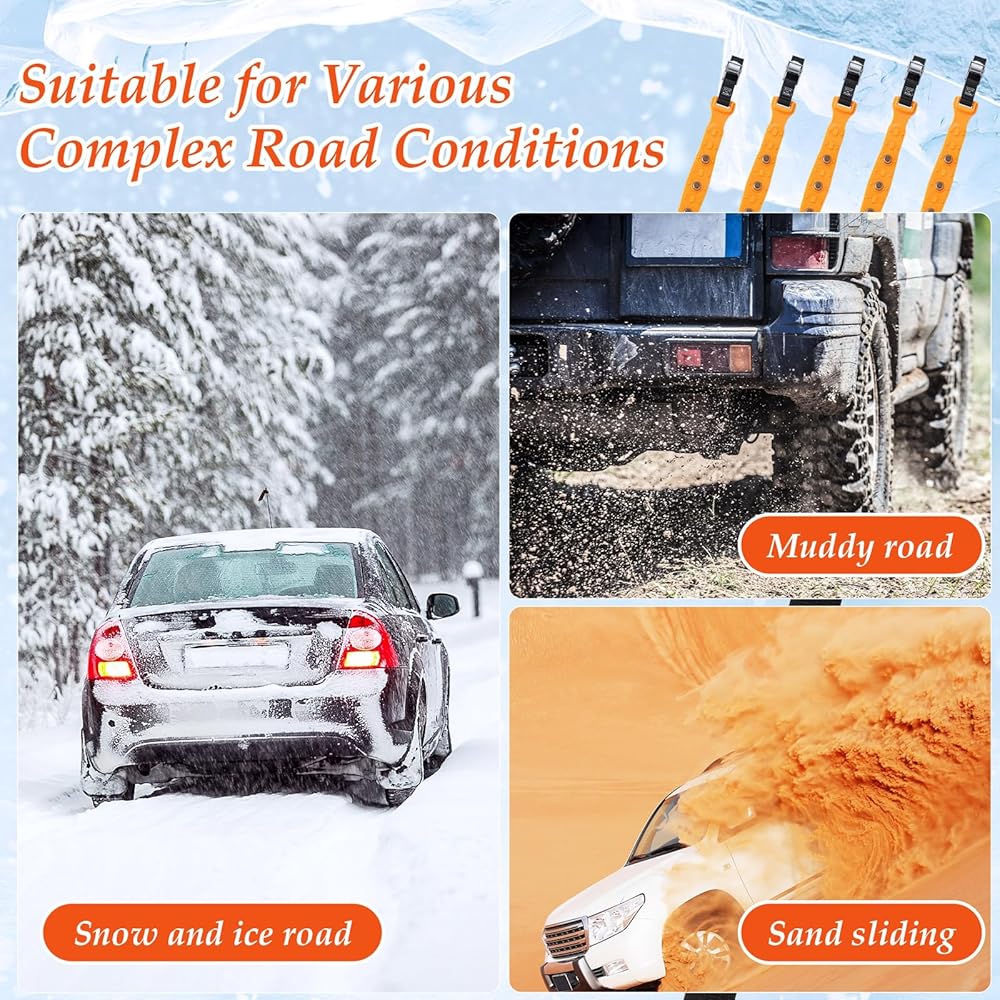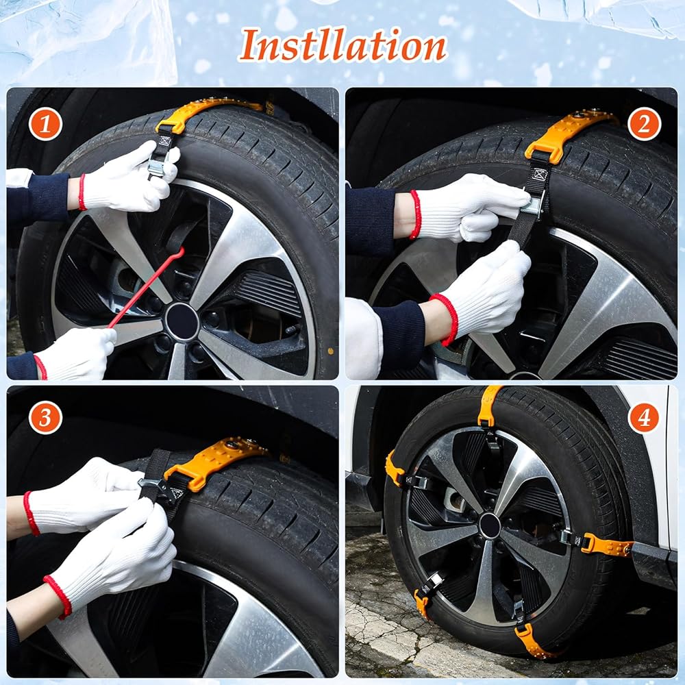 • Quality Material: discover our anti-skid tire chains, designed from gum-rubber material; These tire chain straps are not only resilient but also withstand diverse weather conditions, ensuring durability and long-lasting service