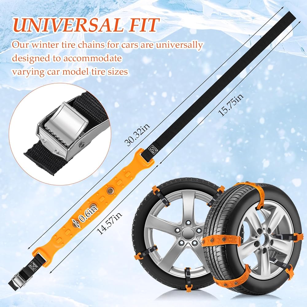 • Exceptional Safety Features: feel confident and secure on snowy or slippery roads with our tire chains; They significantly increase the traction and grip of your tires, reducing the chance of skidding for safer, smoother driving