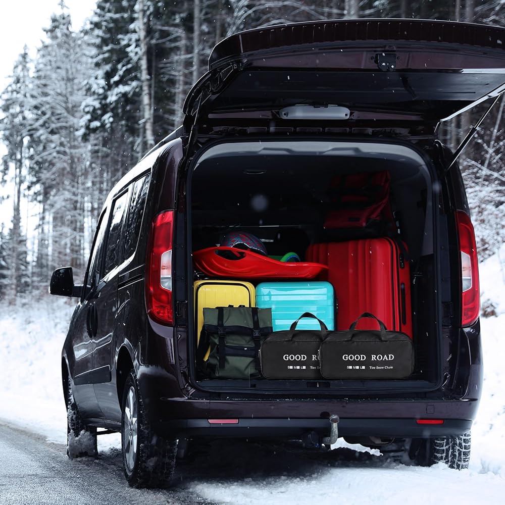 Our comprehensive package serves as an excellent emergency kit for families. Whether you encounter unexpected road conditions or fall victim to a flat tire, these chains provide a reliable quick-fix solution.