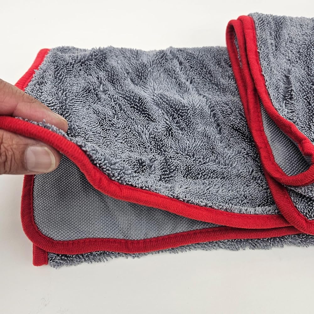 • Ultra-Absorbent: This microfiber towel features a premium high GSM rating, ensuring superior absorbency for drying surfaces quickly and effectively. 1200GSM Premium Grade - This towel is 1200gsm that makes this towel highly strong for multiple washes. High Quality - 14,000 ultra thin fibres per square centimetre lifts and holds dust, dirt, grease and spills. Absorbs upto 8 times its own weight in water.