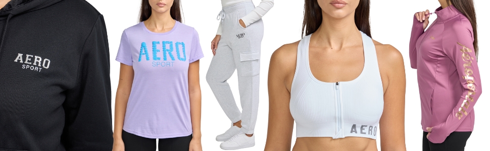 Stylish Metallic AERO SPORT Logo: Make a statement with the eye-catching metallic AERO SPORT logo at the chest, adding a touch of flair to your activewear.