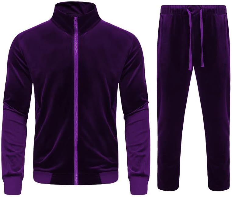 Track Suits for Men Set 2 Piece Full Zip Velour Outfits Solid Color Velvet Tracksuit