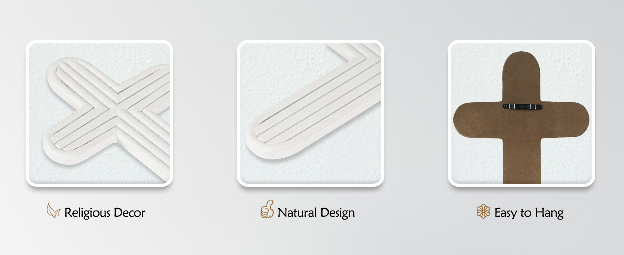 • سهل التعليق - هذا الصليب الأبيض لا يتطلب تجميعًا ويمكن تعليقه بسهولة في منزلك أو مكتبك. تأتي كل قطعة مع فتحة تعليق في الخلف ومسامير لاستخدامها في التثبيت على الحائط.