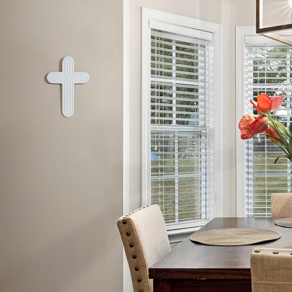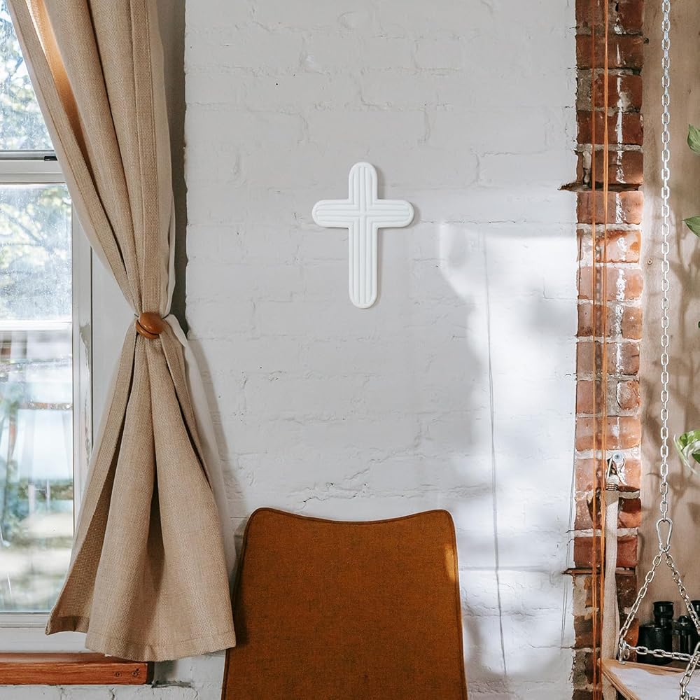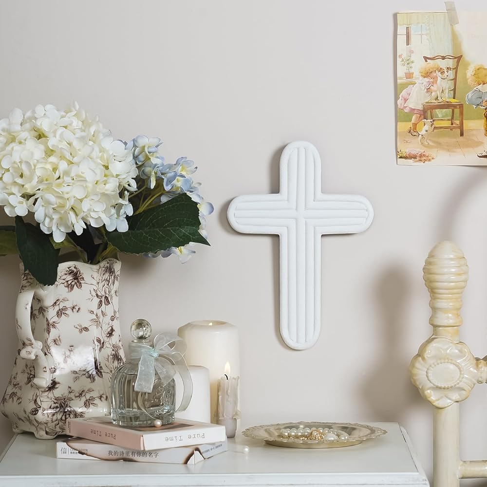 ديكور حائط متقاطع من NIKKY HOME، صليب روحي للمسيحيين، صليب جداري ديني أبيض مع خطاف على الحائط أو الطاولة لتزيين غرفة المنزل في الكنيسة