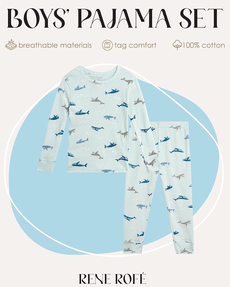 Give your toddler the ultimate in comfort and style with the Rene Rofe Boys' Snug Fit Pajama Set. This 2-piece set includes a long sleeve top and matching bottoms, both crafted from ultra-soft organic cotton that feels gentle against your little one's skin. The snug fit design ensures that the pajamas stay securely in place, providing warmth and comfort throughout the night. Whether your child is a fan of dinosaurs, marine life, or playful animals, these pajama sets come in a variety of fun and vibrant prints that will make bedtime an exciting adventure. The ribbed cuffs and waistband offer a secure fit, perfect for active sleepers who need pajamas that stay put as they move around. Designed for toddlers in sizes 2T to 4T, this set is ideal for keeping your little boy cozy and happy, whether he's drifting off to sleep or lounging around on a lazy morning. The durable cotton fabric ensures that these pajamas will last, wash after wash, making them a practical and stylish addition to your toddler's wardrobe. Machine washable for easy care, this pajama set is a must-have for any parent looking for quality sleepwear that combines comfort, durability, and fun designs.
