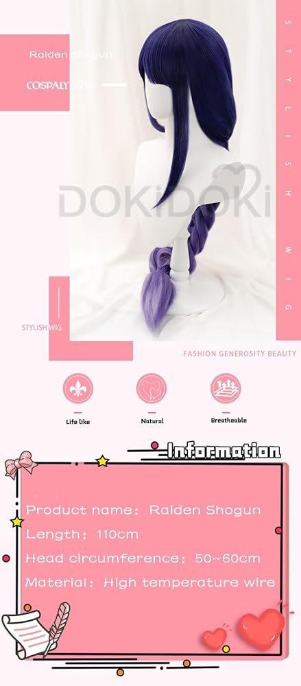 مادة المنتج: شعر مستعار Raiden Shogun التنكري مصنوع من ألياف عالية الجودة تتحمل درجات الحرارة العالية وهي ناعمة وحريرية، وليس من السهل أن تتشابك أو تسقط.