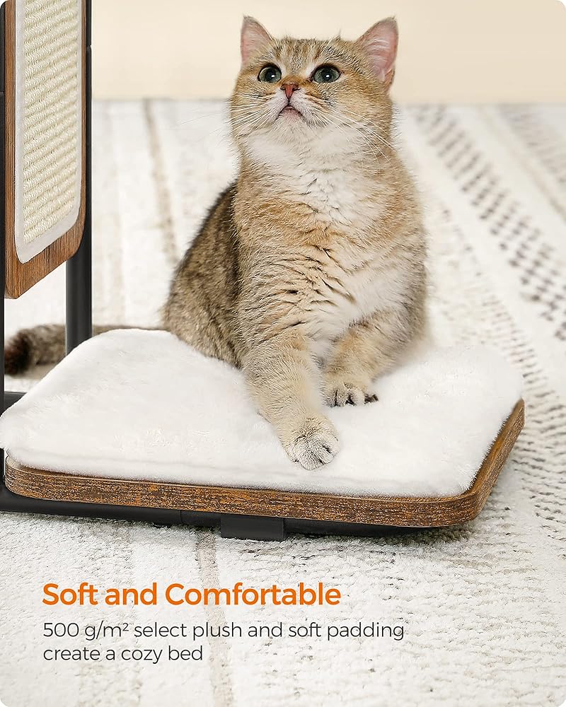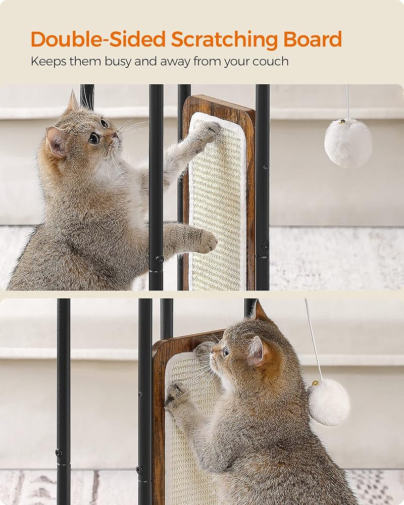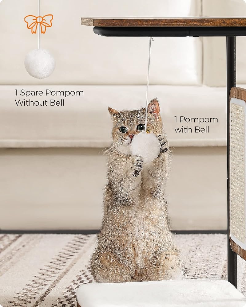 [استرخي. خدش. اللعب] يلبي برج القطط متعدد الوظائف هذا جميع احتياجات قطتك: منطقة استراحة مبطنة جيدًا للقيلولة، ولوح خدش للمخالب وكرات بوم بوم معلقة لإبقائها مستمتعة