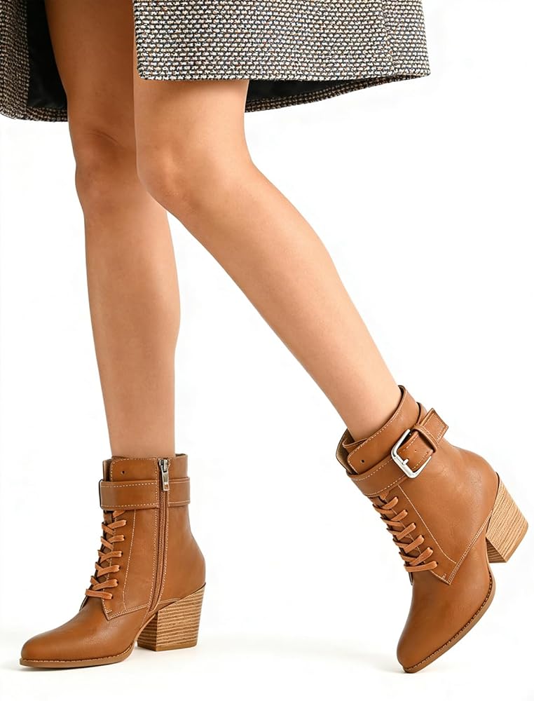 الطراز الأنيق والكلاسيكي: اظهري بمظهر أنيق ومريح مع أحذية AIUZO. يتميز هذا الحذاء العصري بأربطة حذاء عالية الجودة، وتصميم حزام بإبزيم، وصورة ظلية تصل إلى الكاحل، مما يجعله الخيار الأمثل لاستكمال مظهرك.