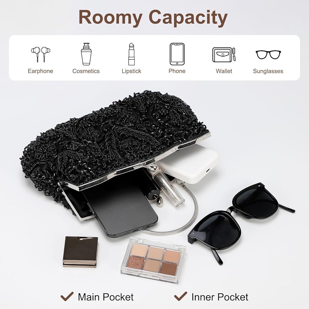 • [هدية]: حقيبة اليد المسائية هذه هي المكمل المثالي لأي نوع من الملابس الرسمية أو الكاجوال، ليس فقط كإكسسوار للأزياء ولكن أيضًا كحقيبة عملية للحفاظ على الأشياء الصغيرة آمنة. تعتبر حقيبة اليد المسائية هذه هدية رائعة للنساء من أي عمر.