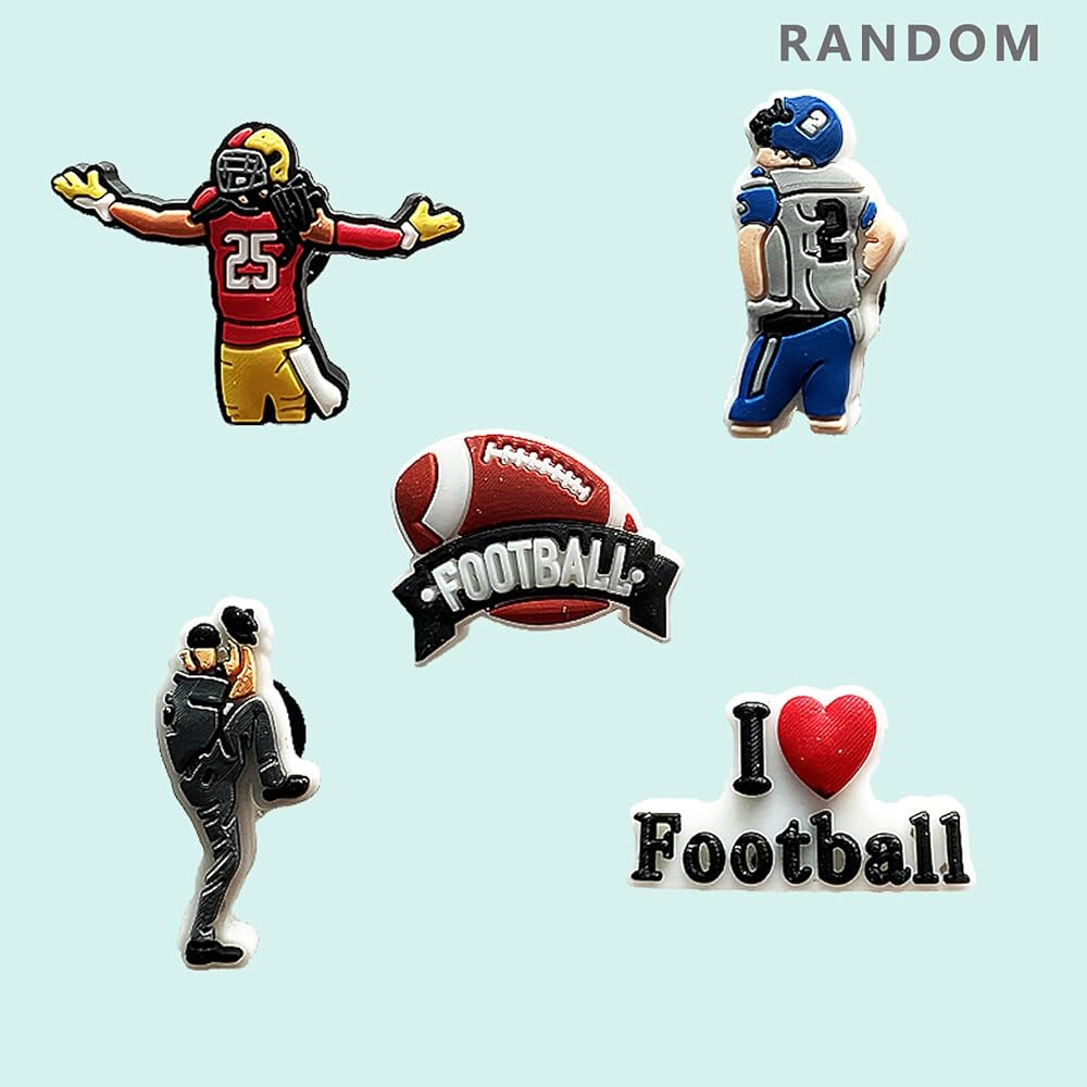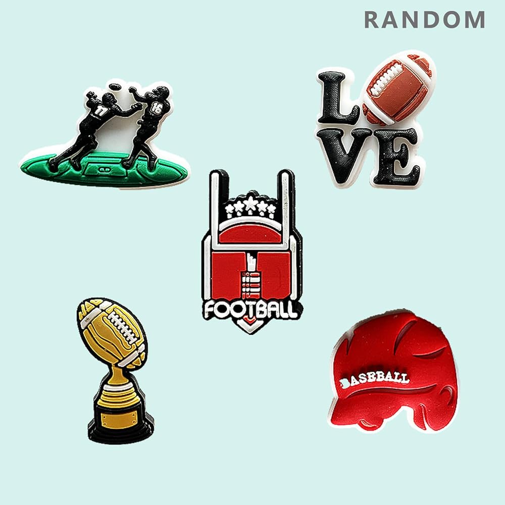 إكسسوارات الأحذية ذات طابع الرجبي، وديكورات حفلات الرجبي، وإكسسوارات الأحذية الرياضية، وإكسسوارات الأحذية البلاستيكية المناسبة لأساور الأحذية، وهدايا الحفلات.
