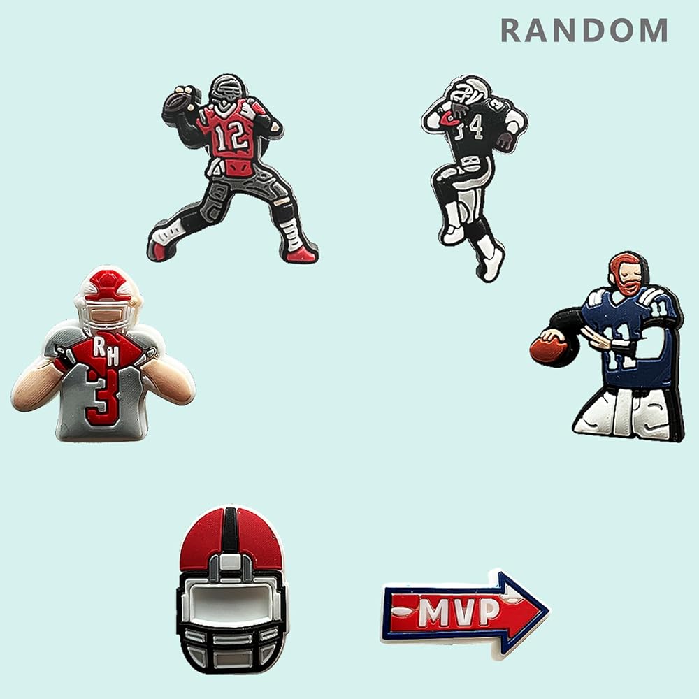 Rugby themed shoe decorations, rugby party decorations, shoe decorations, rugby accessories suitable for boys, girls, children, and men's rugby team party benefits, PVC shoe decorations suitable for shoe wristbands, party gifts