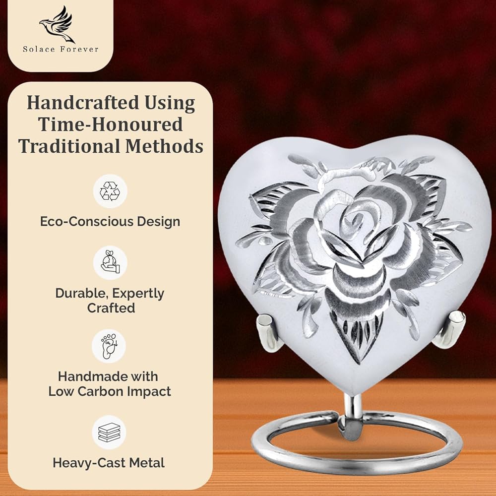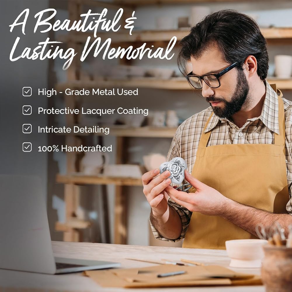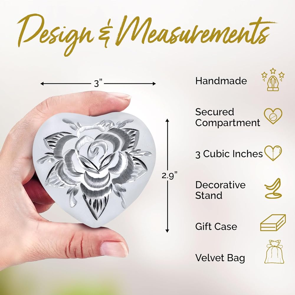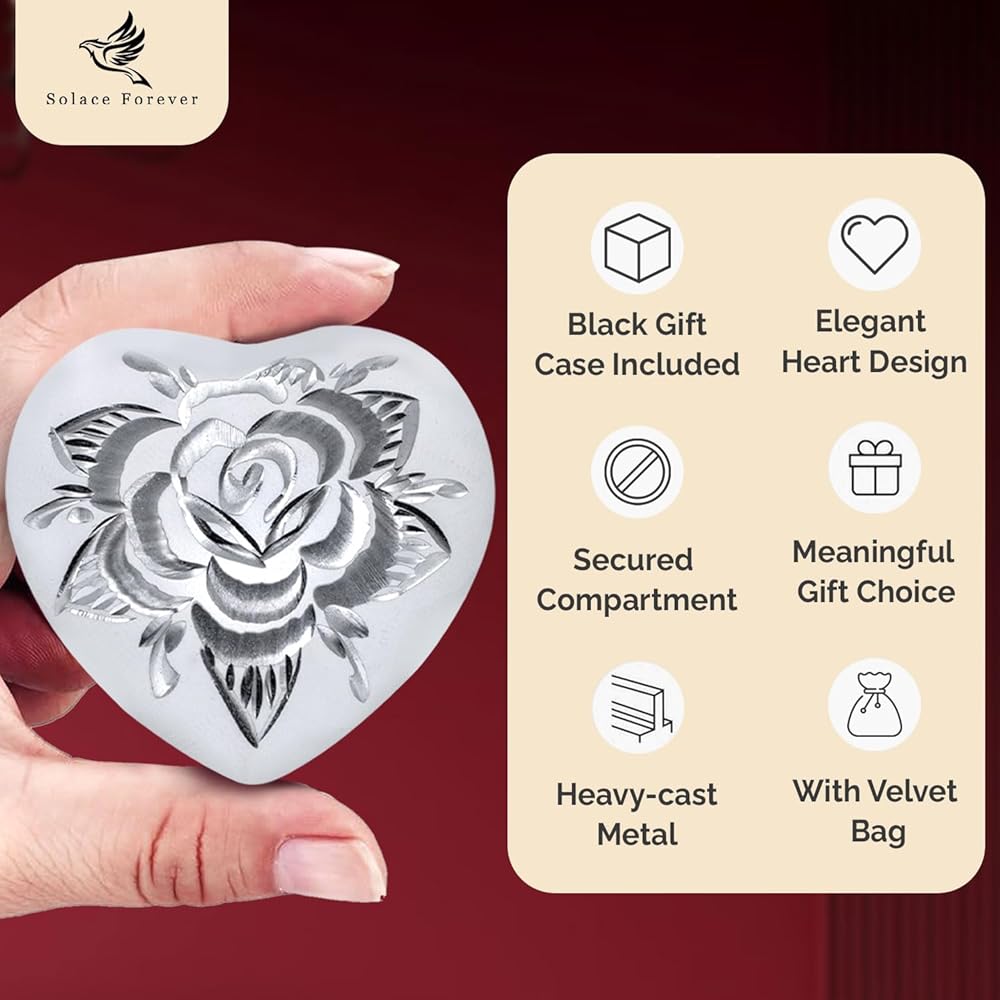• جرة أرجوانية صغيرة عالية الجودة ومتينة: قلب جرة الورد الجميل هذا صلب ومصنوع من معدن عالي الجودة. الجرار الأرجوانية الصغيرة المبهجة لتصميم الرماد البشري مصنوعة يدويًا على يد حرفيين ذوي مهارات عالية باستخدام التقنيات التقليدية العريقة. يمكنك الاطمئنان إلى أن هذه الزهرة ذات اللون الأرجواني الصغير ستدوم لأجيال.