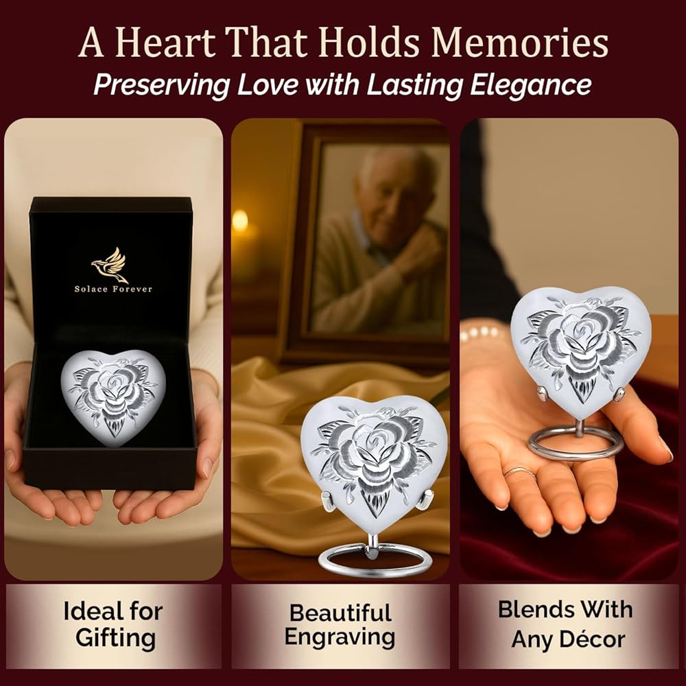 • جرة حرق الجثث على شكل قلب وردي أرجواني جميل: امنح أحبائك الحب الذي يستحقه. لقد صُنعت جرة القلب الأرجواني الخاصة بنا للرماد البشري للنساء البالغات يدويًا بحب وعناية. إن جرة الورد الأرجوانية للرماد للرجال البالغين هي تصميم كلاسيكي لن يخرج عن الموضة أبدًا. تعتبر جرة الرماد على شكل قلب أرجواني رمزًا للحب الخالد وهي تصميم متعدد الاستخدامات يمكن لأي شخص استخدامه. هذه الجرة الأرجوانية الصغيرة الجميلة للرماد للنساء سوف تكرم أحبائك.