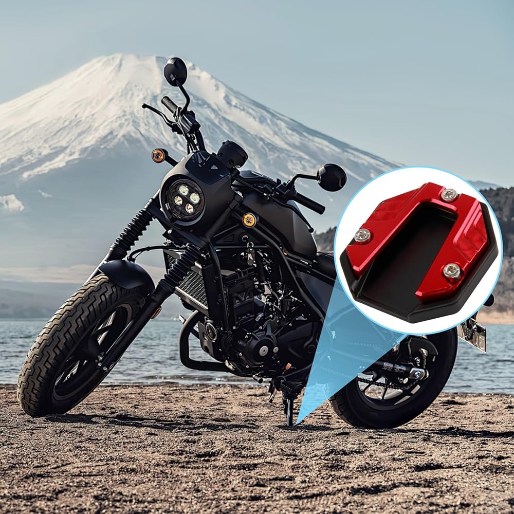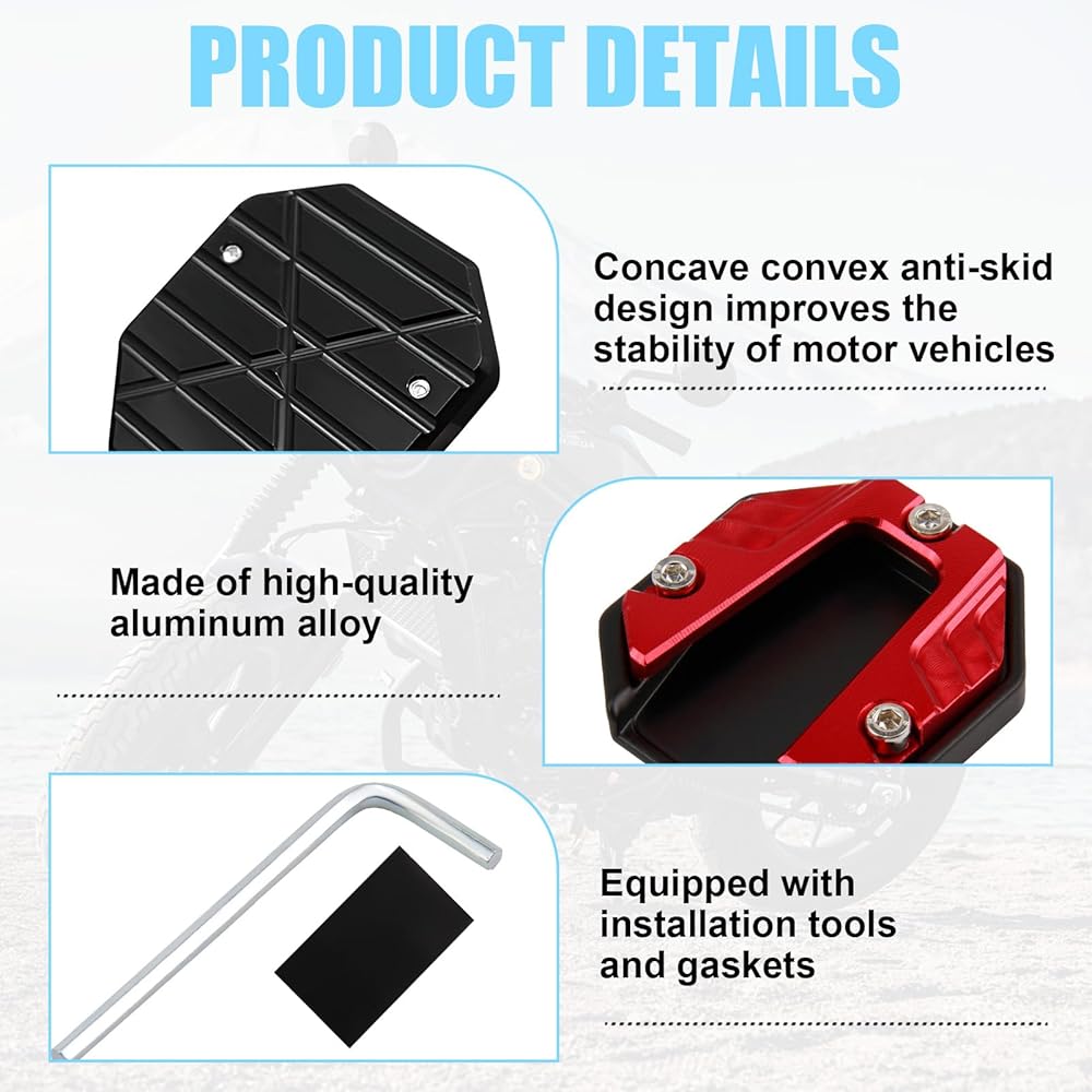• 【STYLISH DESIGN MEETS FUNCTIONALITY】 Make a statement with our uniquely designed kickstand pad that combines form and function. The sleek, modern appearance adds a touch of sophistication to your motorcycle, setting it apart from standard models. This isn't just a practical accessory; it's a fashion-forward addition that showcases your attention to detail and commitment to both style and safety on the road