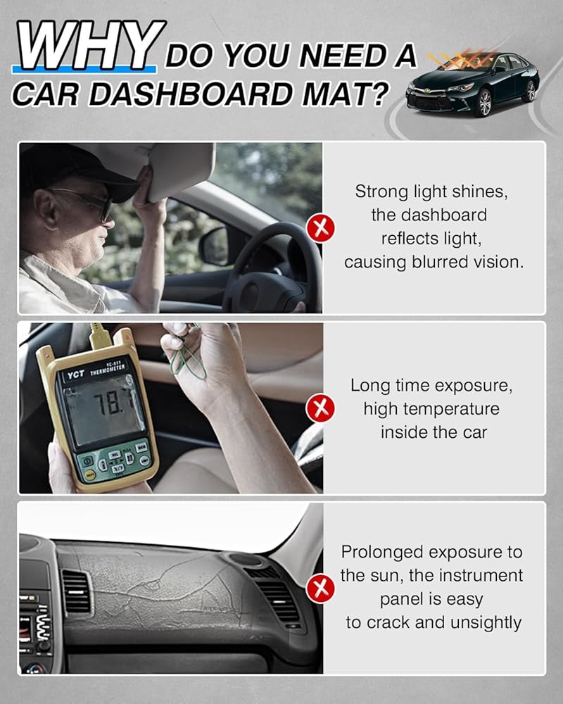 【الملحقات الضرورية للكامري 】-سيحمي غطاء لوحة القيادة كامري لوحة القيادة الخاصة بك من الأشعة فوق البنفسجية الضارة والحرارة العالية التي تسبب التشقق والبهتان. كما يمكنه حجب الأوساخ والغبار الذي قد يؤدي إلى الخدوش والجروح. الحفاظ على برودة الجزء الداخلي للسيارة في الصيف ودفئها في الشتاء.