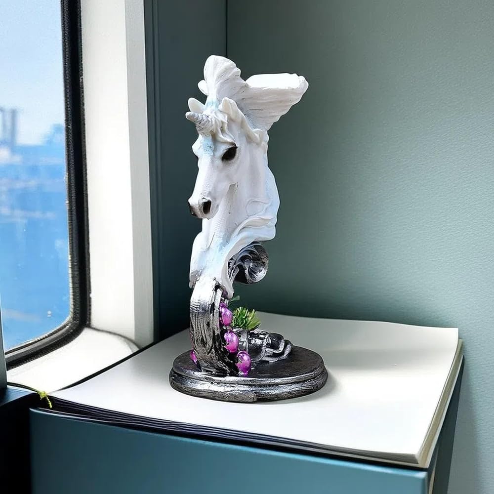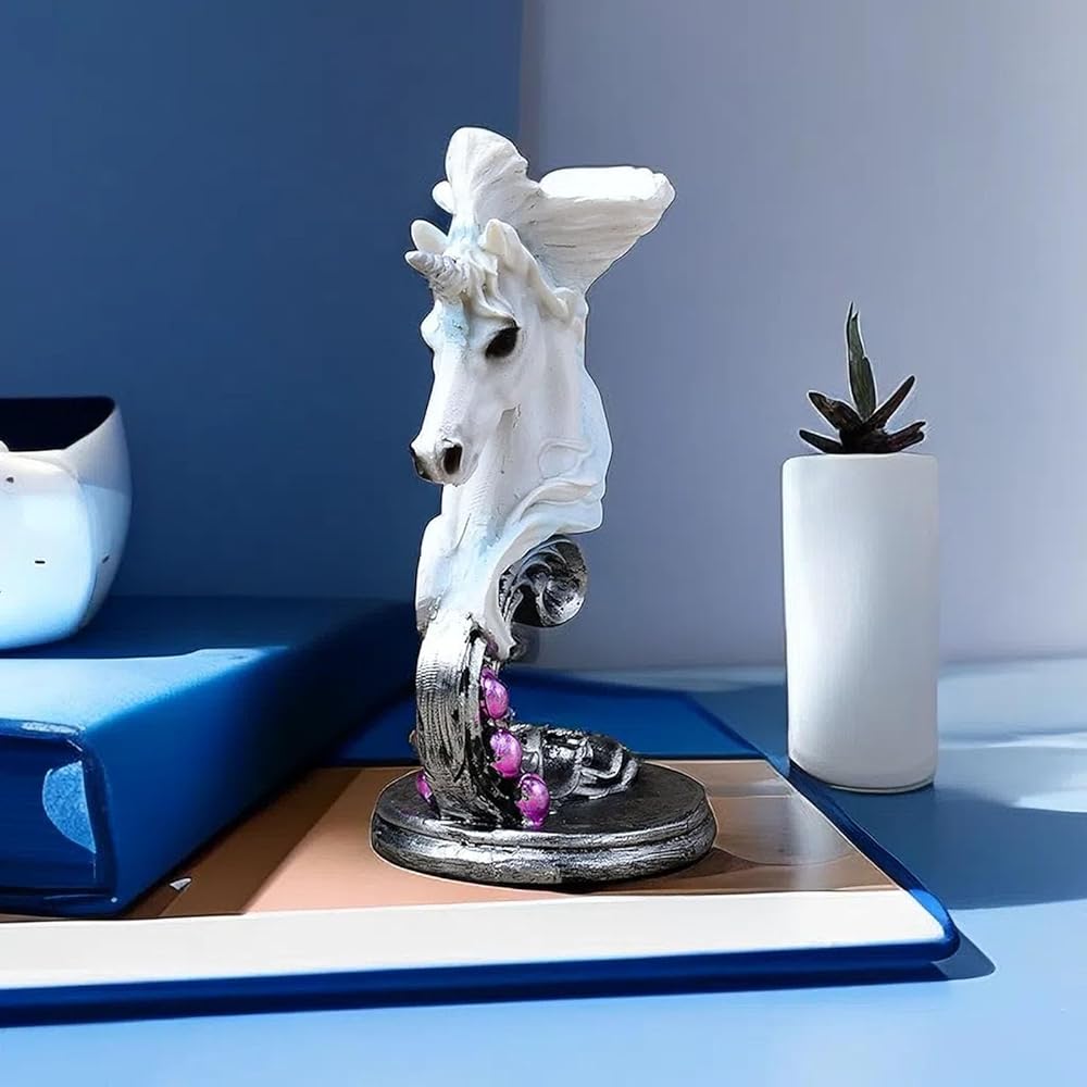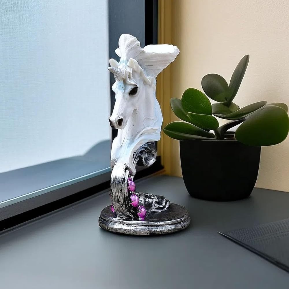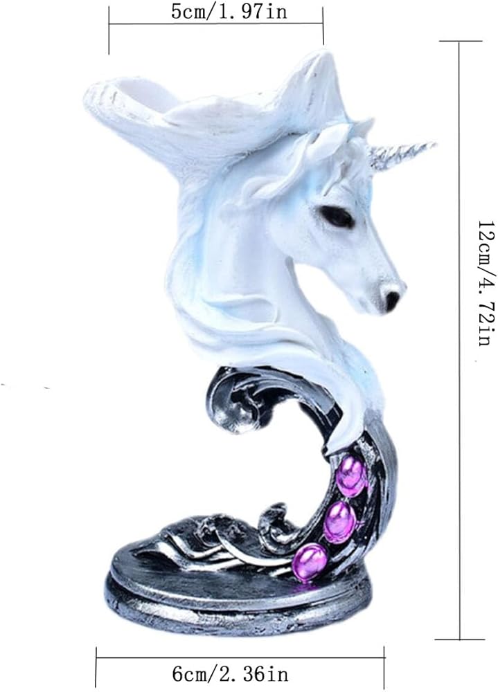 Introducing the unicorn ornament crystal ball base resin, a visually stunning and whimsical decorative piece designed to elevate your home decor. This unique product combines the mystical allure of unicorns with the elegance of crystal spheres, making it a perfect addition to any collector's showcase.Crafted with precision and attention to detail, this resin ornament features a captivating unicorn figurine with intricate designs and embellishments. Standing firmly on a crystal ball base, this decorative wolf head figurine creates a mesmerizing display that effortlessly captures attention.Designed specifically for crystal ball enthusiasts, this sphere base holder ensures stability and balance, allowing you to showcase your favorite crystal spheres securely. The base is carefully constructed using high-quality materials, providing a sturdy foundation for your precious collectibles.Whether you desire to enhance the ambiance of your living room, bedroom, or office space, this crystal sphere pedestal offers versatility in home decor arrangements. Its charming design and flawless finish make it an ideal choice for adding a touch of enchantment and sophistication to any room.Not only does this product cater to crystal ball collectors, but it also appeals to those who appreciate mythical creatures and fantasy-inspired decor. Displaying this unicorn ornament crystal ball base resin will undoubtedly spark conversations and captivate the imagination of both young and old alike.Bring the magic and beauty of unicorns into your living space with the unicorn ornament crystal ball base resin. It's the perfect combination of elegance, charm, and functionality, making it an excellent gift option for crystal enthusiasts, collectors, and anyone who adores mythological creatures.