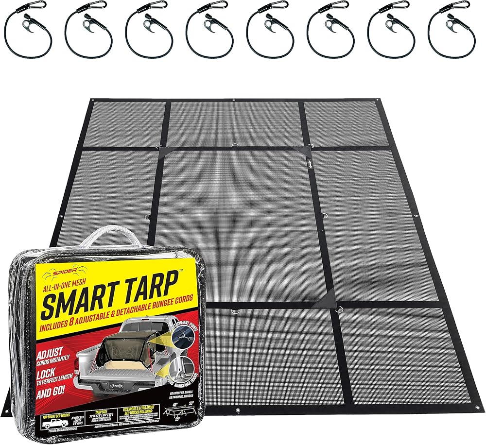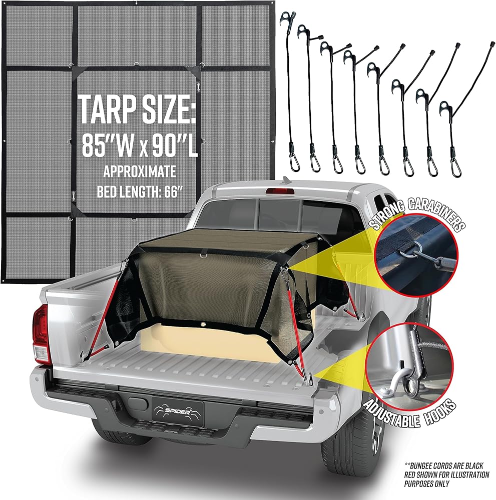 • متعدد الاستخدامات - مع 16 نقطة ربط و8 أربطة ربط قابلة للتعديل، يوفر نظام المرفقات SPIDER متعدد النقاط خيارات لا حصر لها لتغطية الأحمال العالية وغير المتساوية. 3 أحجام للالتقاطات وأغطية المقطورات وأغطية ممتازة للتخييم والاستخدام المنزلي. وفر الوقت والمال مع هذه الإضافة الرائعة لسرير شاحنتك وإكسسوارات الباب الخلفي.