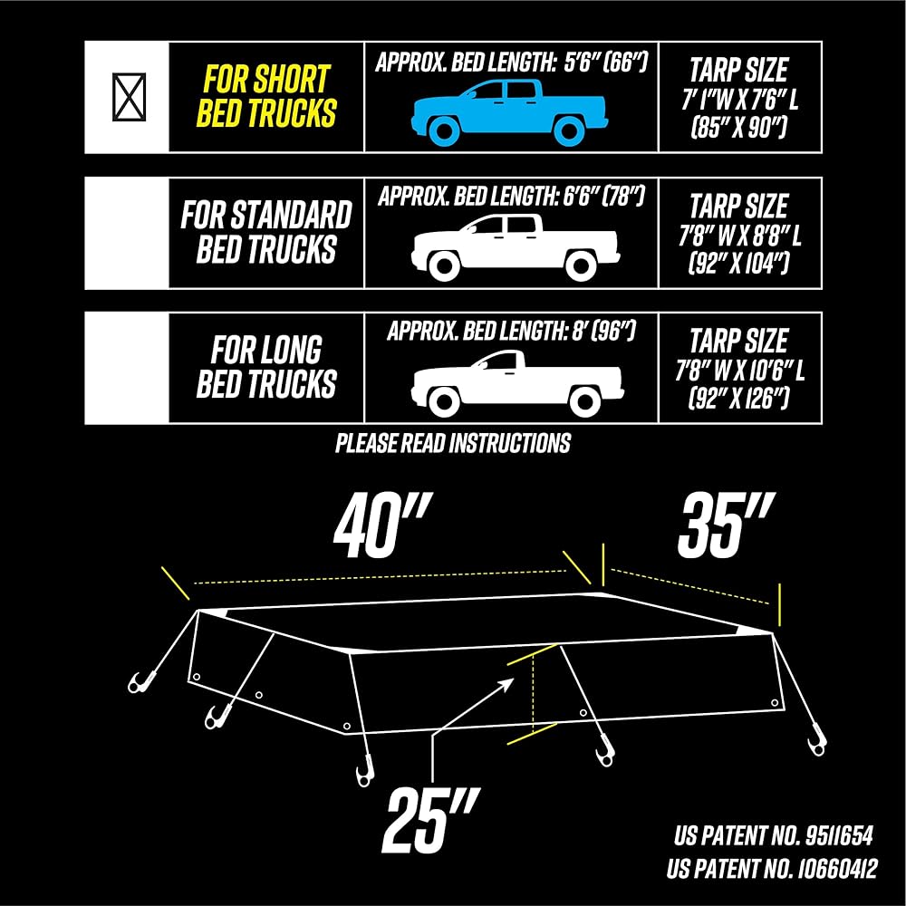 • سريع - تصميم Smart Tarp الخالي من التشابك والتمزق يجعل تغطية حمولتك أمرًا سهلاً. يمكن تعديل كل ربطة عنق للأسفل بسرعة من 15.24 سم إلى 101.6 سم للحصول على الطول والتوتر المثاليين. لا توجد عقد أو أبازيم أو سقاطات أو أشرطة خارجية لإتلاف الطلاء. تتميز الخطافات الواسعة الحاصلة على براءة اختراع بفتحة إصبع سهلة الإمساك للتعامل الآمن.