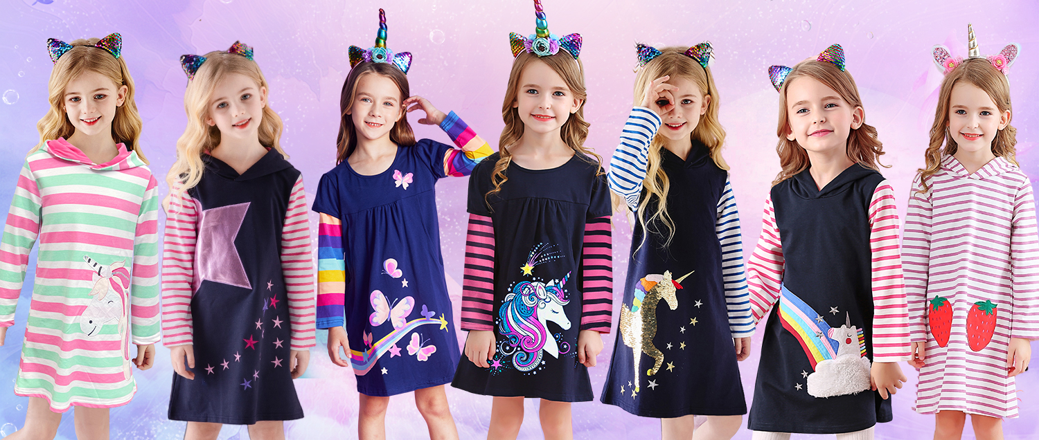 - زخارف وأنماط مطبوعة جيدة الصنع من تصميم أصلي، اختيار مثالي لملابس الفتيات الصغيرات الجميلات.