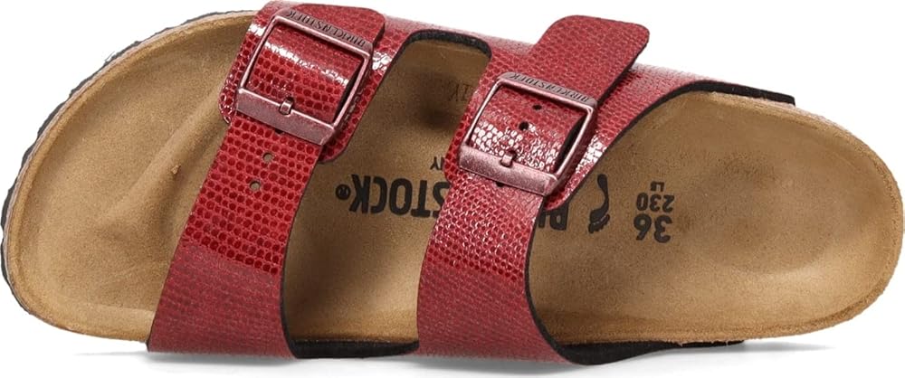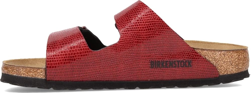 Women's Birkenstock, Arizona Birkoflor Slide Sandal - Narrow Width. The classic Birkenstock two strap slide for all day comfort in a fresh textured pattern. You'll love this lightweight casual sandal that will only get more comfortable with wear. Birko-Flor - durable, synthetic upper material with a leather-like finish and soft backing Slide on style with double adjustable straps for a perfect fit Soft lined insole keeps feet fresh and dry Pronounced arch support and deep heel cup Footbed molds and shapes to the foot for excellent comfort Manmade outsole Please be advised that the Birkenstock Narrow width accommodates both traditional narrow and medium widths. Regular accommodates Regular to Wide.