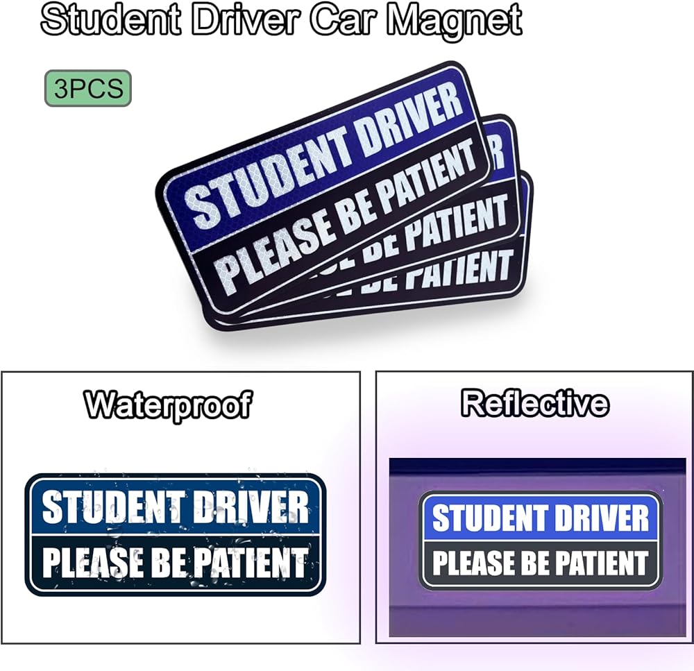 🧲 مغناطيس سائق الطالب للسيارة: ملصق سائق الطالب مدفوع بمغناطيسات فائقة القوة من الدرجة الأولى، يبقى ثابتًا في مكانه بشكل آمن حتى أثناء القيادة عالية السرعة أو الظروف الجوية القاسية!