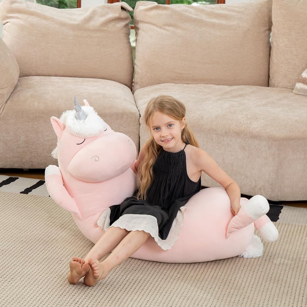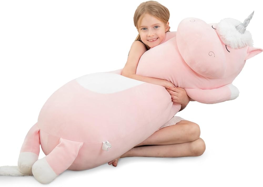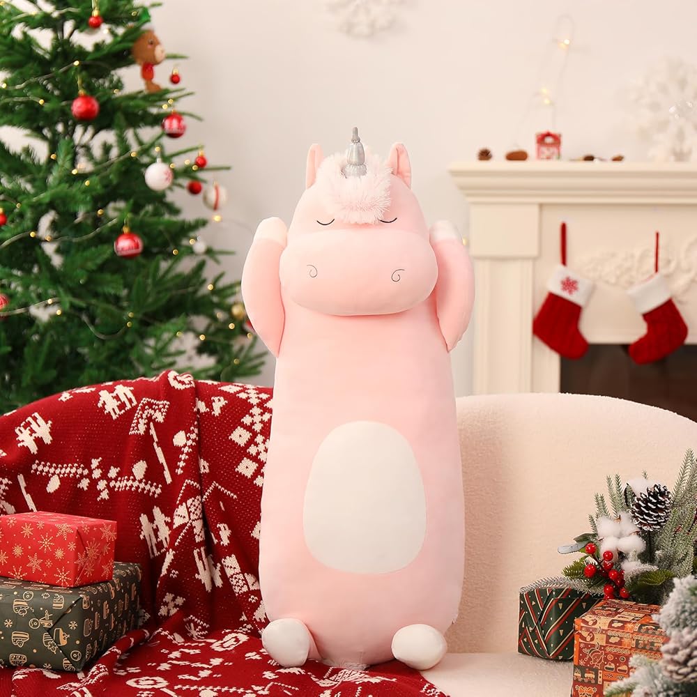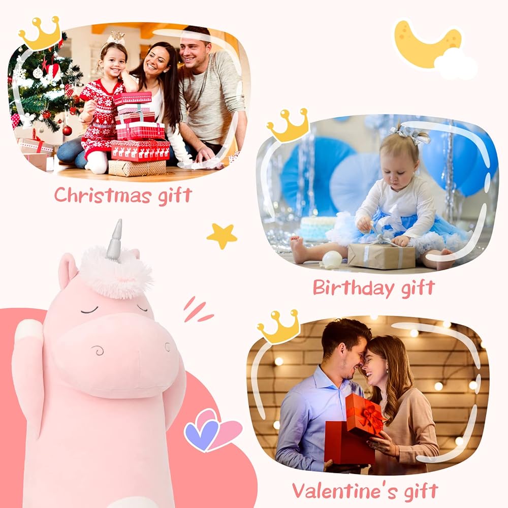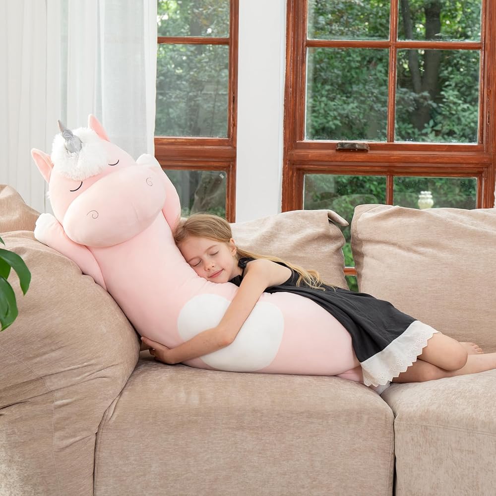 morismos 36.2 "وسادة الجسم يونيكورن كبيرة المعانقة وسادة الحيوان المحشو يونيكورن، لعبة أفخم لينة للأطفال فتاة، وسادة الجسم الحيوان لعيد الميلاد عيد ميلاد عيد الحب، الوردي