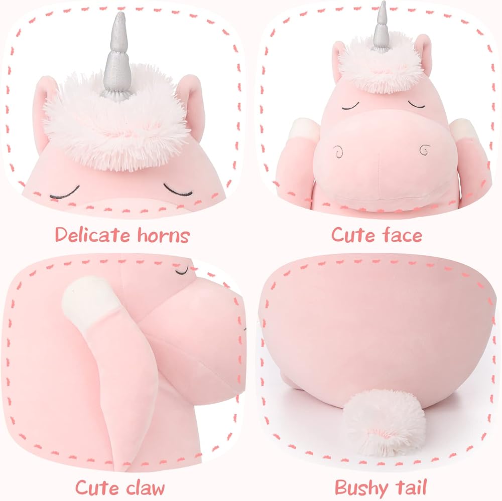 【تصميم آمن】وسادة يونيكورن العملاقة مصنوعة من تكنولوجيا التطريز، دون أي أجزاء حادة أو قابلة للإزالة. أنها آمنة جداً. يمكن للقرن الصغير الجميل ثلاثي الأبعاد والوجه النائم الجميل الاسترخاء، ويمكنك احتضان هذا الحيوان القطيفة الجميل والناعم على شكل وحيد القرن، والذي يمكن أن يضيف متعة لحياتك.