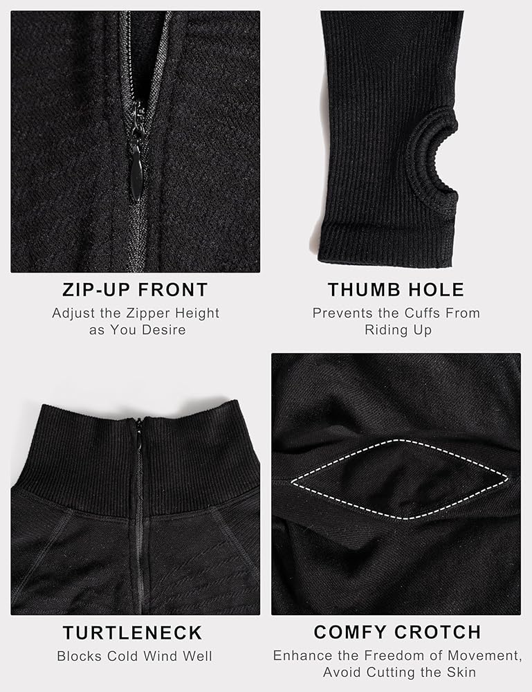 • تصميم فريد: يبدو السروال القصير ذو الأكمام الطويلة مع فتحة الإبهام أكثر أناقة، ويمنع الأساور من الركوب، مما يعزز الدفء. تصميم الياقة القائمة يحمي الرقبة، وهو مقاوم للرياح، ويحتفظ بالدفء.
