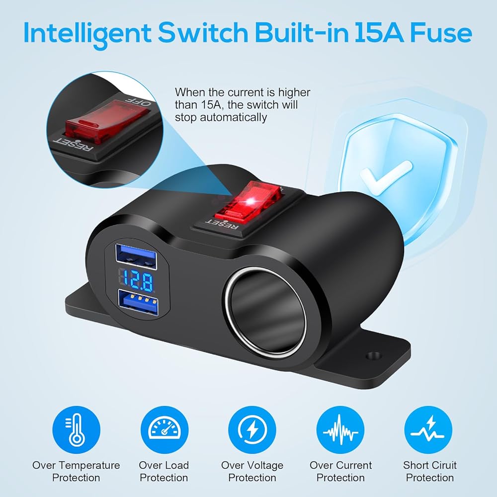 وصلة مقبس ولاعة السجائر بمنفذ USB من Linkstyle، مقسم شاحن السيارة مع منفذ USB مزدوج A لقارب السيارة RV 12 فولت/24 فولت