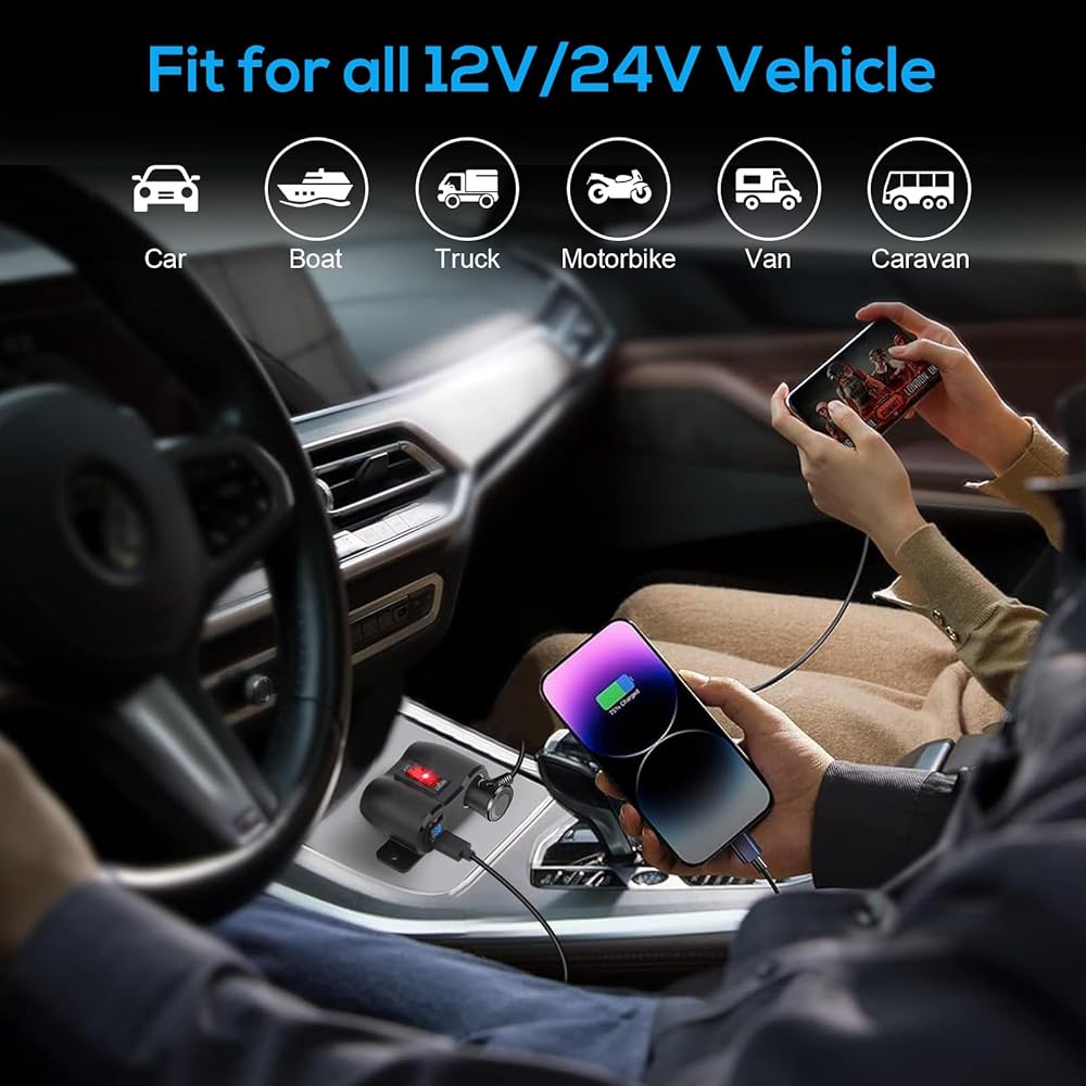 • توافق واسع: يناسب المركبات 12 فولت/24 فولت، بما في ذلك السيارات وسيارات الدفع الرباعي والشاحنات وعربة الجولف وATV وUTV، مثالية للرحلات الطويلة
