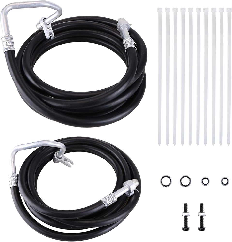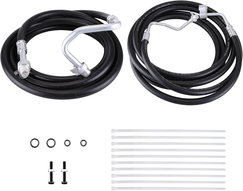 【Package Include】2PCS Rear AC Line Full length high and low pressure (suction and discharge rear lines), washer seal/o-ring kit, nuts, Gaskets, studs and zipper ties