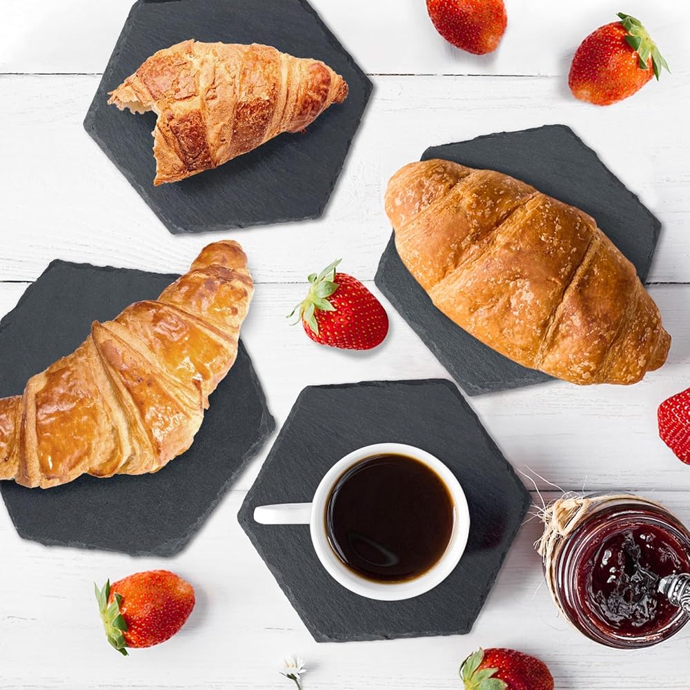 • جودة عالية: مصنوعة من ألواح طبيعية 100%، هذه الأكواب الحجرية مصنوعة يدويًا من الصخور غير المعالجة. تبدو الأنسجة الحجرية الأصلية رائعة وجميلة، وتحتفظ قواعد الأكواب الحجرية السوداء بالألوان الأصلية، مما يوفر جمالية منزلية طويلة الأمد ودائمة