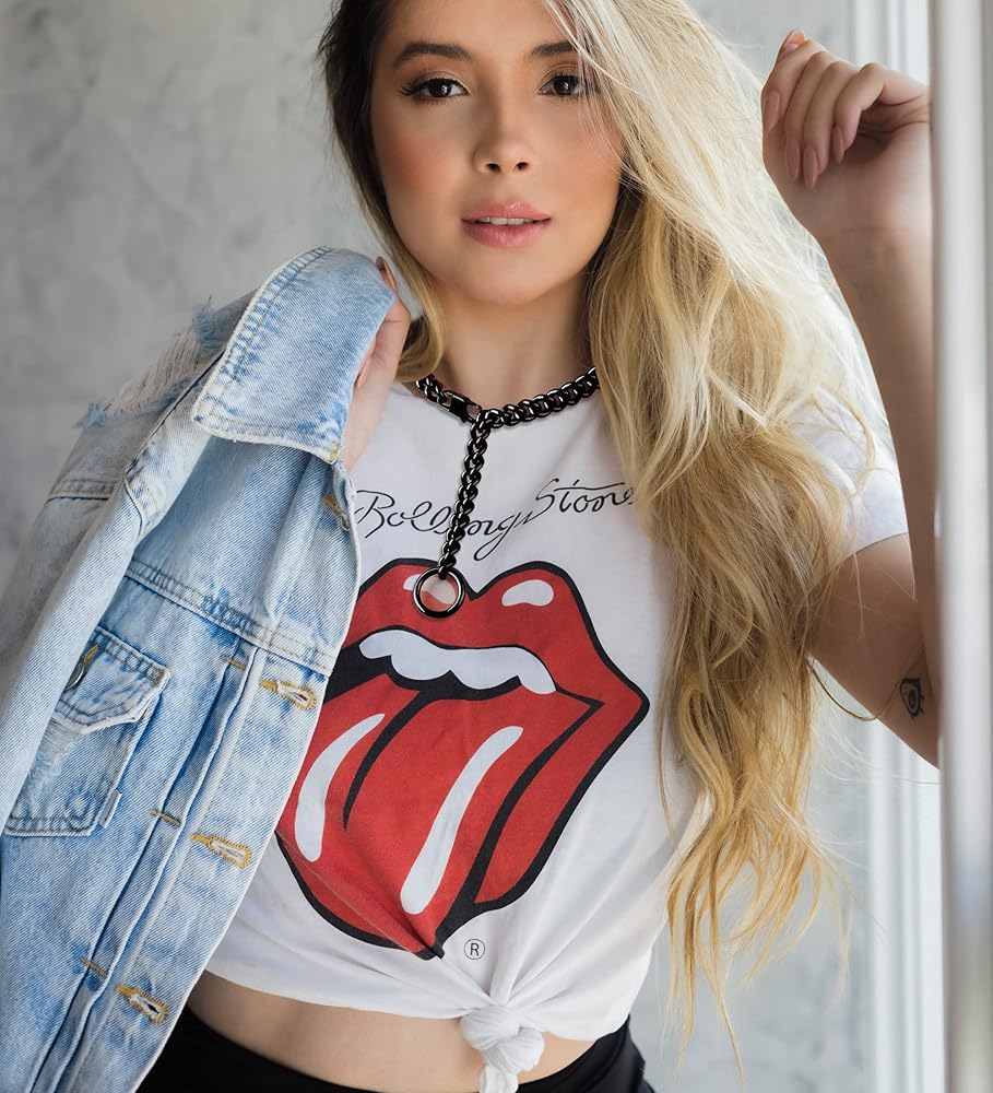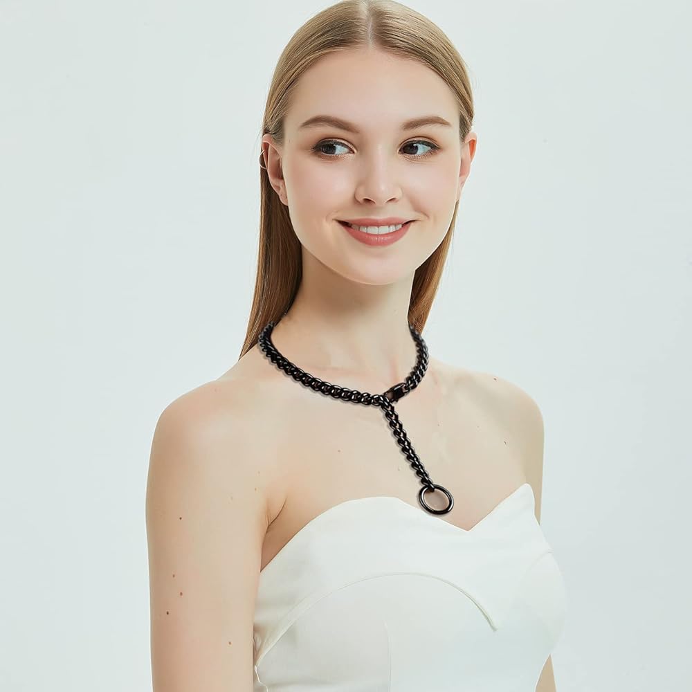 سلسلة قلادة للسيدات من Jxlepe باللون الأبيض الفضي/الأسود وصلة كوبية قابلة للتعديل مع ذيل حزام على شكل حرف O بعرض 0.4 بوصة من Punk Rock Kiwi Hippies من الفولاذ المقاوم للصدأ هدية لها قلادة يومية