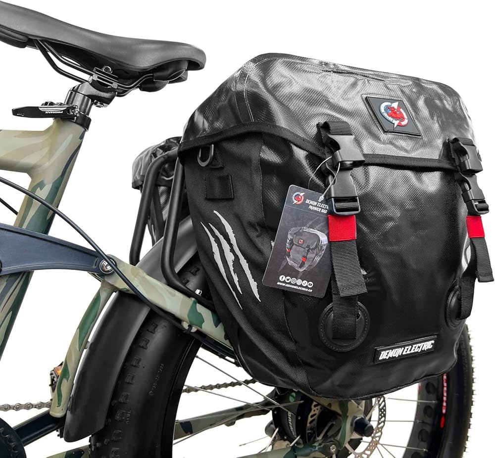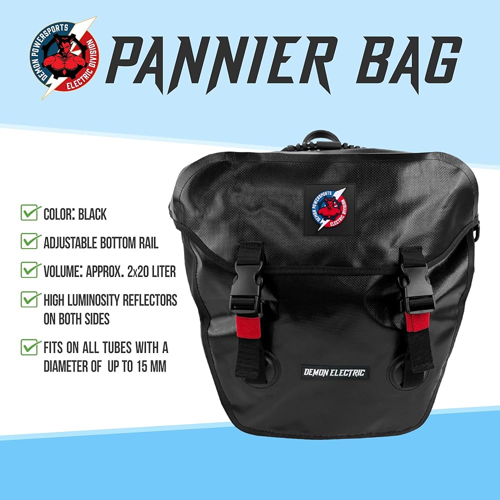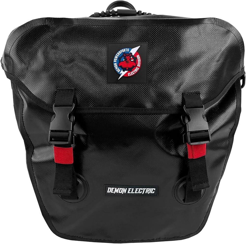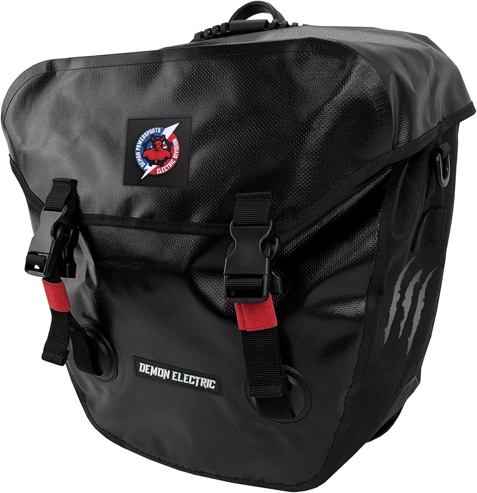 حقيبة Demon Powersports Pannier سوداء بمشبك قابل للتعديل، مقاومة للماء في عاكسات عالية اللمعان، مشبك على مشبك الإضاءة الخلفية ومرفق حزام الكتف على كلا الجانبين، تناسب ما يصل إلى 15 مم (مجموعة من 2)