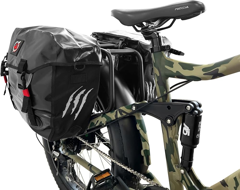 Our waterproof pannier bag is the perfect travel accessory. With 2 x 20 L of storage, let your E-Bike carry all your belongings, and leave your backpack at home. For added safety during nighttime riding, high luminosity reflectors on the side of the bags keep you visible at night and built in edge guards keep the bag and your belongings safe and protected. The bags come equipped with adjustable clips for easy mounting on any rear rack tubes with a diameter of up to 15 mm.