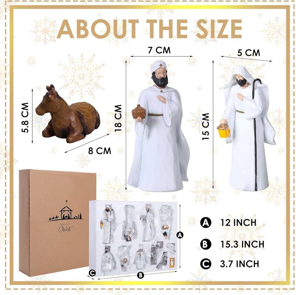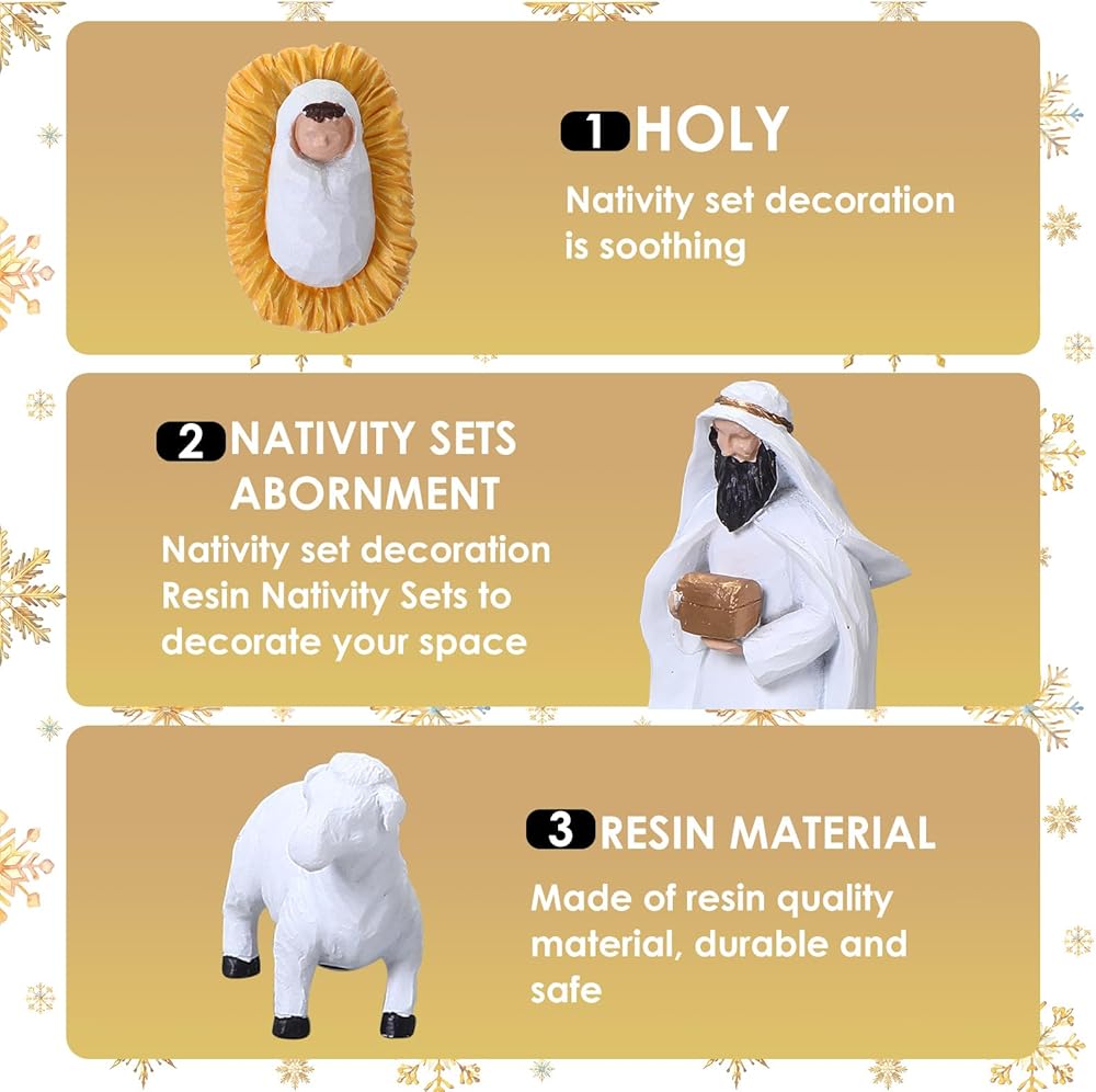 The Christian nativity sets intricate and lifelike details that encapsulate the essence of each character. Made from good resin and crafted with precision molds, each detail is carefully replicated to evoke a sense of nostalgia and bring back cherished childhood memories.