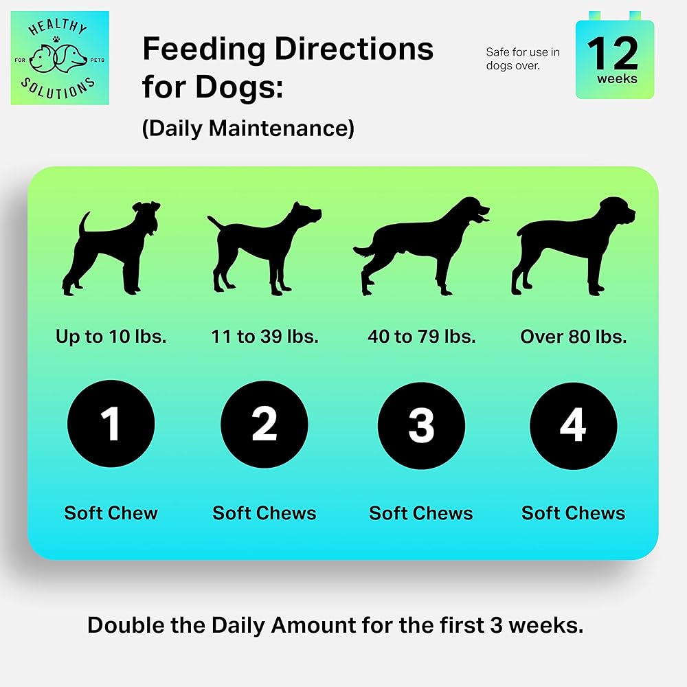 🗸 لجميع مراحل الحياة - مع فيتامين C وE لدعم مضادات الأكسدة، وحمض الهيالورونيك للمساعدة في الحفاظ على تزييت المفاصل. رائعة للكلاب من جميع الأوزان للحفاظ على الراحة والحركة خلال جميع مراحل حياة كلبك