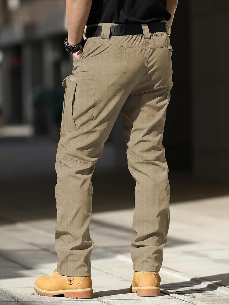 خصر مطاطي: تتميز السراويل التكتيكية للرجال بحزام انتظار خلفي، مما يضمن ملاءمة آمنة ودعم الحركة النشطة.