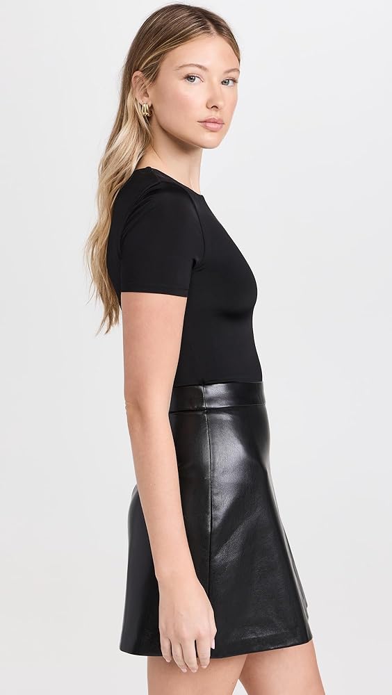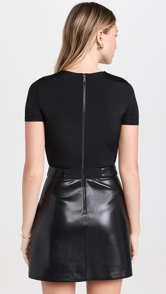 • مقاس مضبوط، مصمم بشكل نحيف وصغير الطول. توفر الصدرية الشبكية التمدد. تتميز التنورة المصنوعة من الجلد الصناعي بملمس أنيق.
