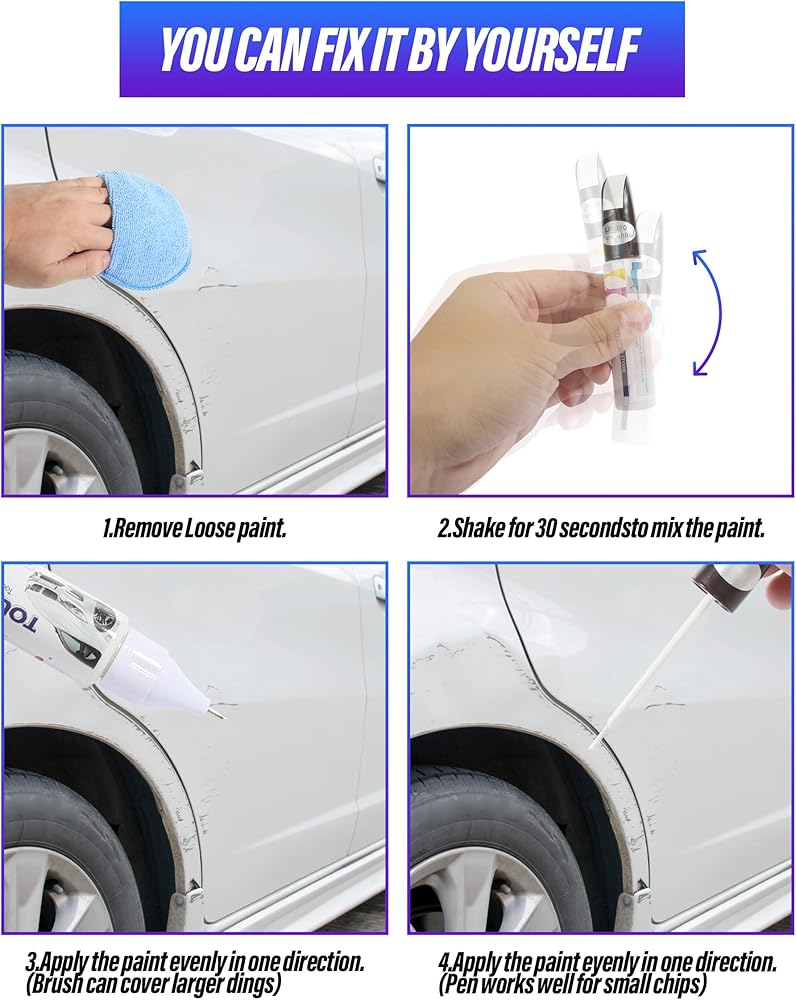 [Easy to Use] Just shake the polishing brush up and down for 30 times to make the paint even. Then unscrew the cover, take out the paint pen, and carefully and evenly apply and fill the scratches with a pen tip or brush. Apply a thin layer of scratches first, and wait for the paint to dry slightly every 5 minutes. Then operate the second and third times until the scratch is slightly higher than the surrounding normal paint.