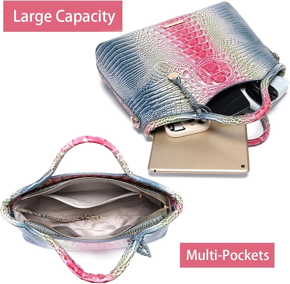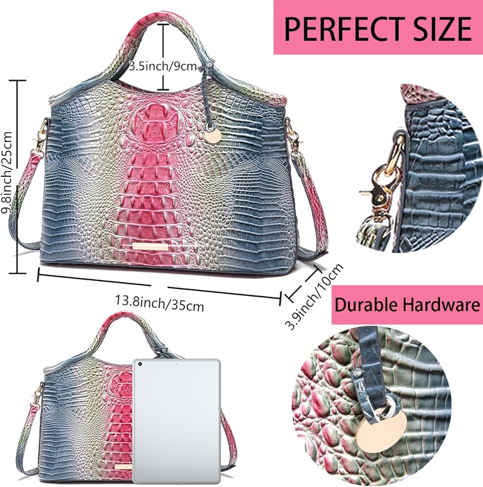 خامة عالية الجودة: حقيبة اليد هذه مصنوعة من جلد صناعي عالي الجودة ومقاوم للماء والخدش مع طباعة تمساح. يضيف المظهر الخارجي اللامع والمزخرف، إلى جانب السحابات الذهبية والأجزاء الصلبة القوية، إلى متانته وجاذبيته الأنيقة. تضمن البطانة الناعمة والمريحة حماية ممتلكاتك