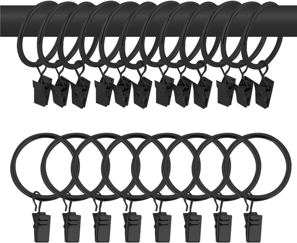 • Quantity of Curtain Clip Rings Set: Set of 40 pcs, including rings and removable clips. Enough curtain rods rings clips for hanging standard size curtains from a curtain rod