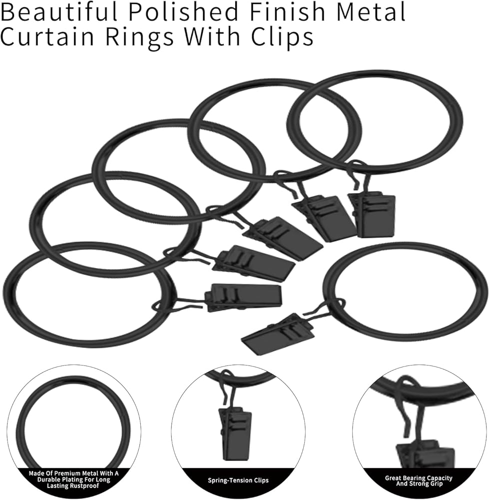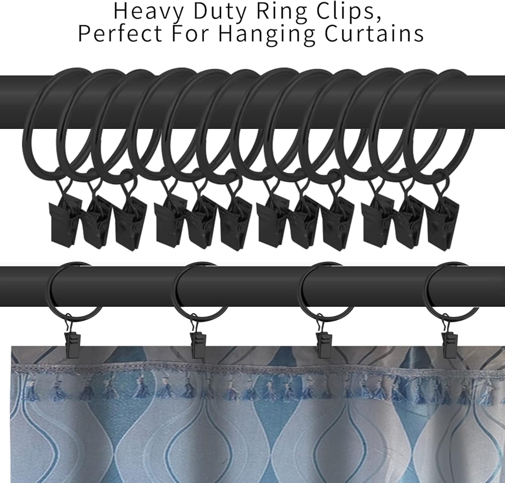 • Smooth Sliding Heavy Duty Curtain Rings: The curtain rings slide smoothly onto an existing curtain rod, and each drapery ring features a heavy-duty spring-tension bow clip for hanging, which attaches to the top edge of curtains for elegant hanging. Meanwhile, the drape clips are very tight so the curtain will not slip out