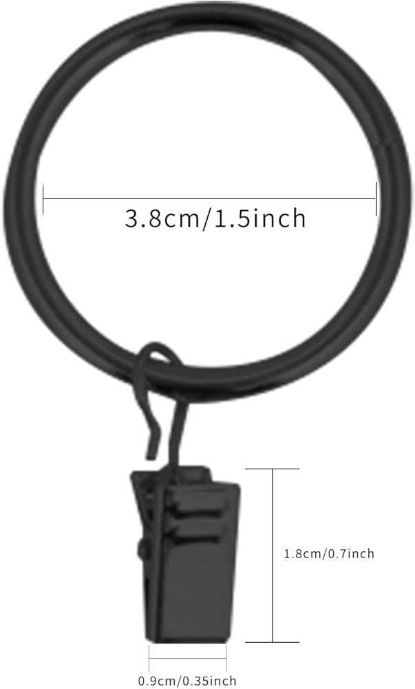 • Dimensions of Curtain Rings: Inner diameter: 1.5 inch / 3.81cm. External diameter: 1.77inch / 4.5cm