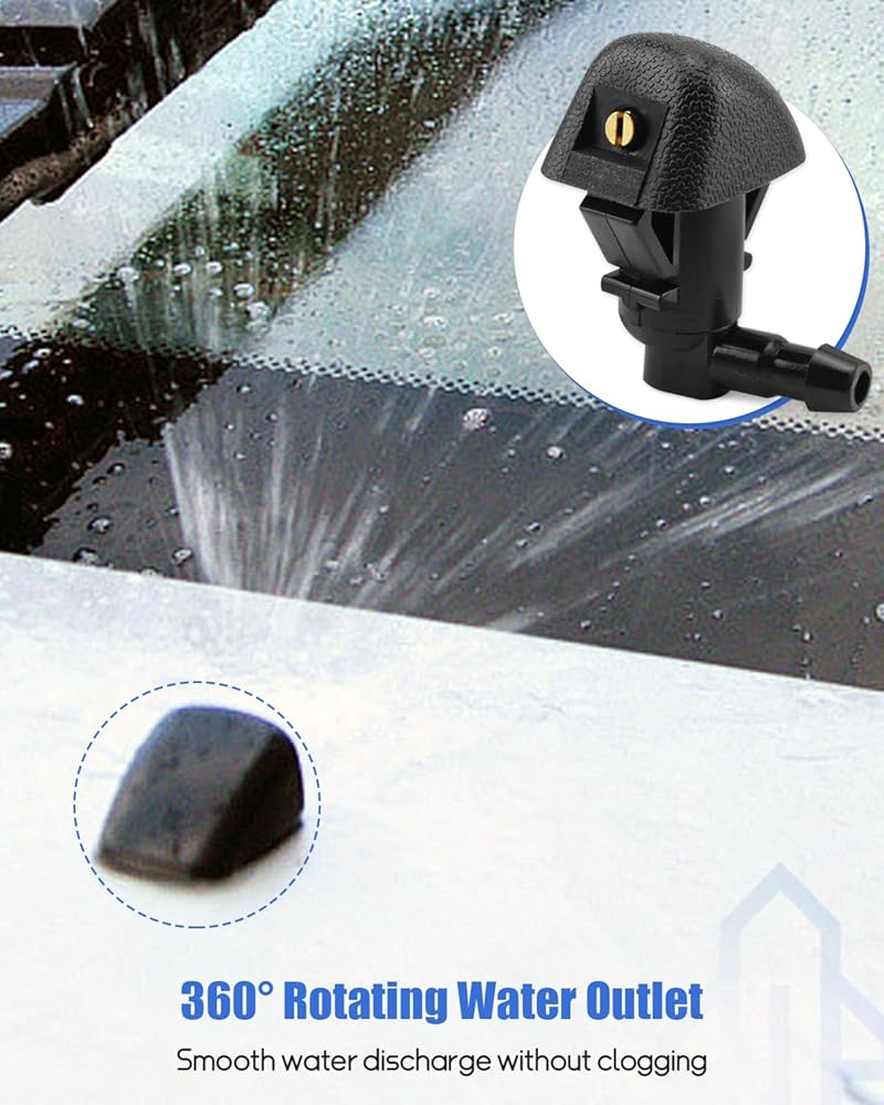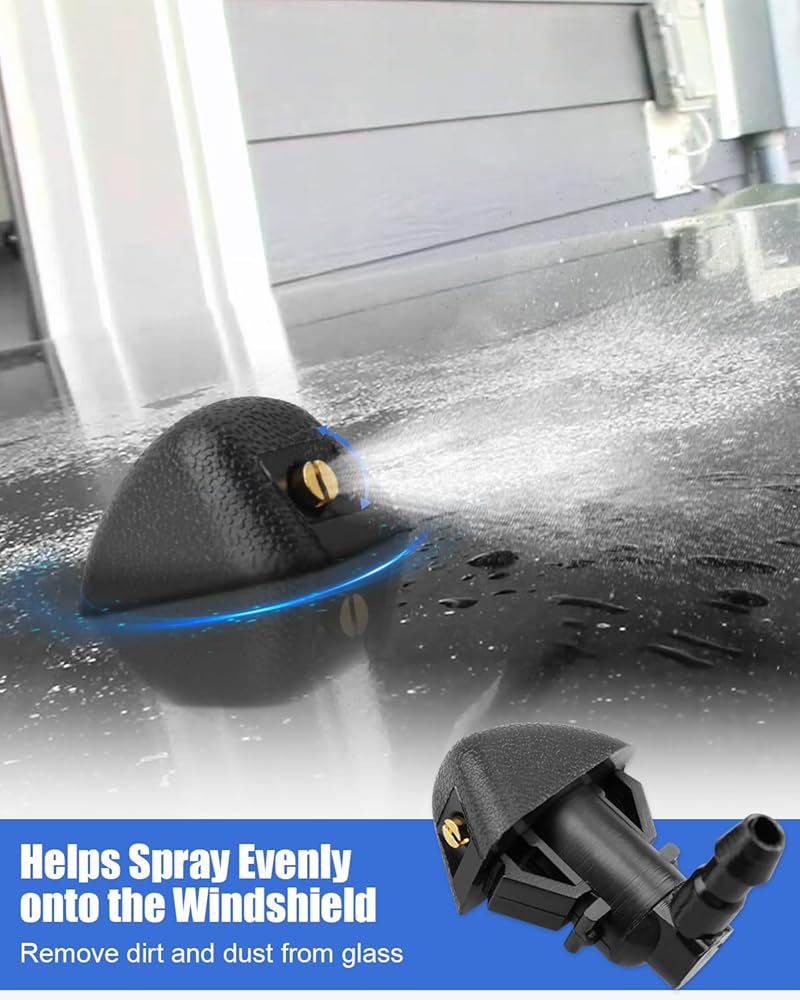 Function: The windshield washer nozzle sprays the washer fluid evenly onto the windshield, which helps to remove dirt, dust and other debris from the glass.