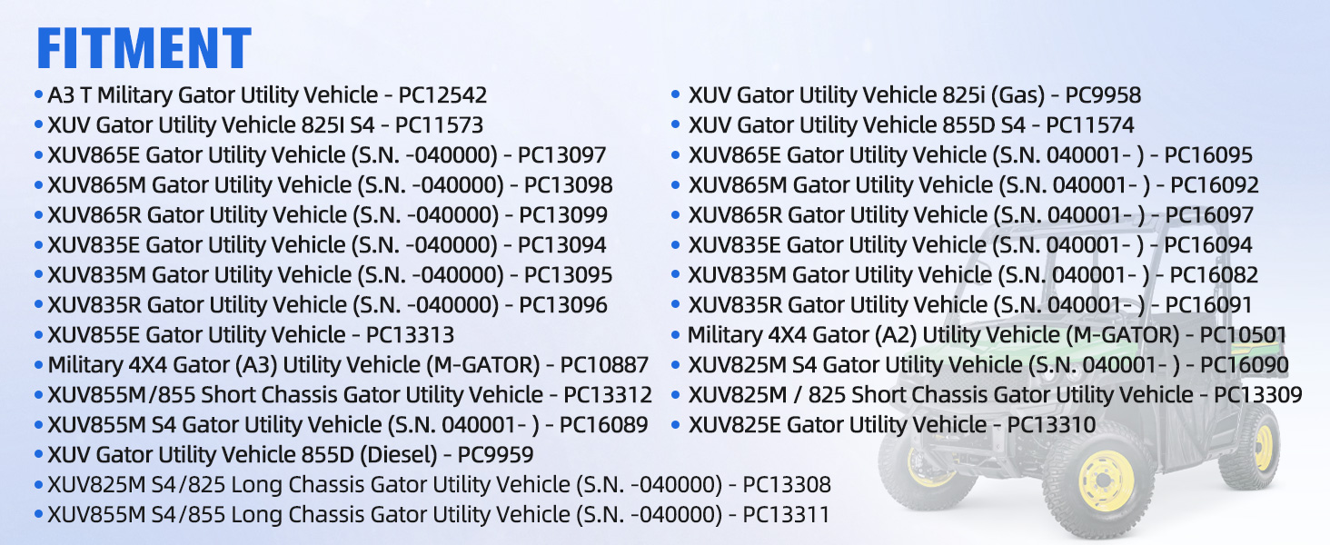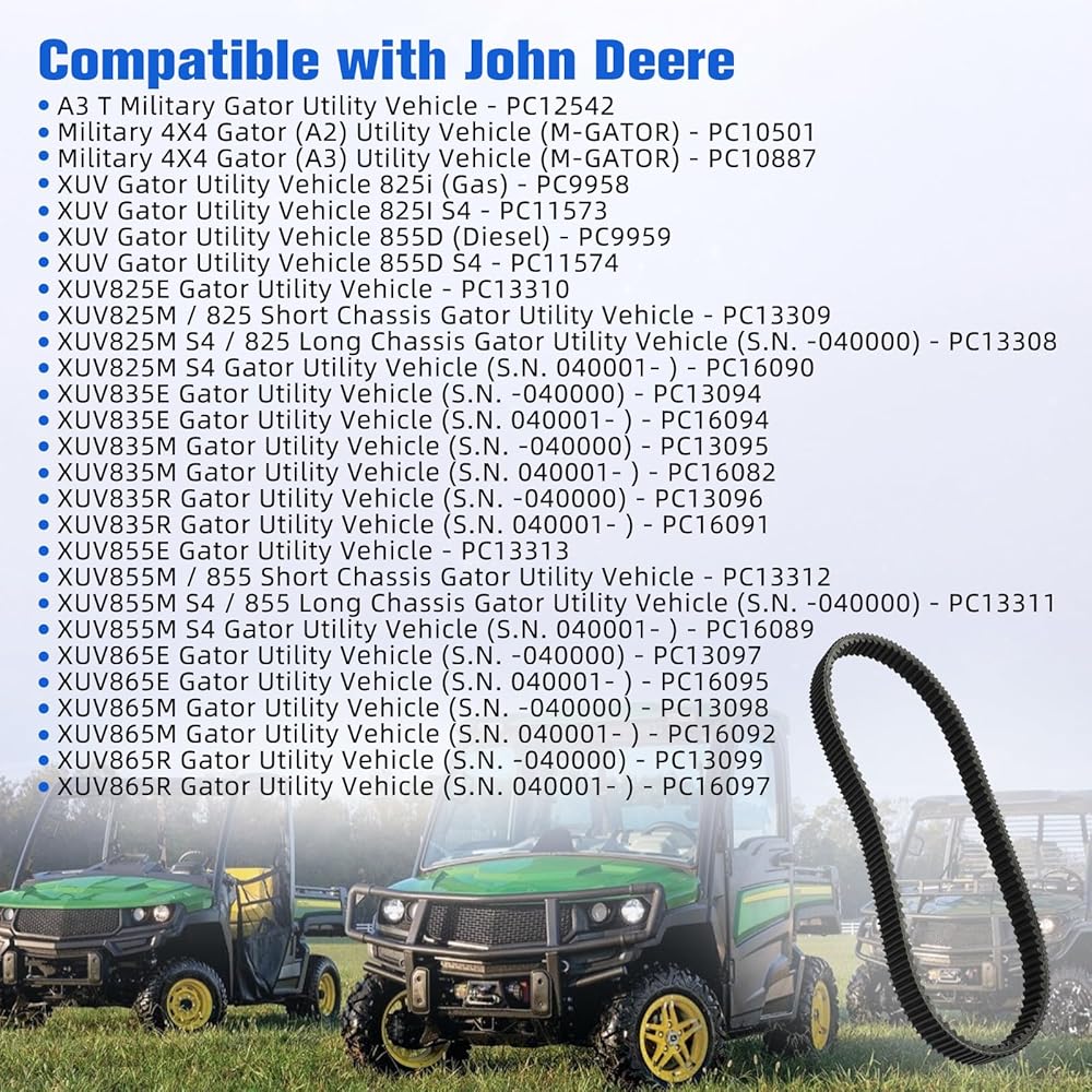 • متوافق مع: حزام محرك القابض مناسب لأداة John Deere XUV Gator Utility 825I 825E 825M 835E 835M 835R 855D 855E 855M 865E 865M 865R، Military 4X4 Gator (A2)، Military 4X4 Gator (A3)، A3 T Military Gator مركبة فائدة