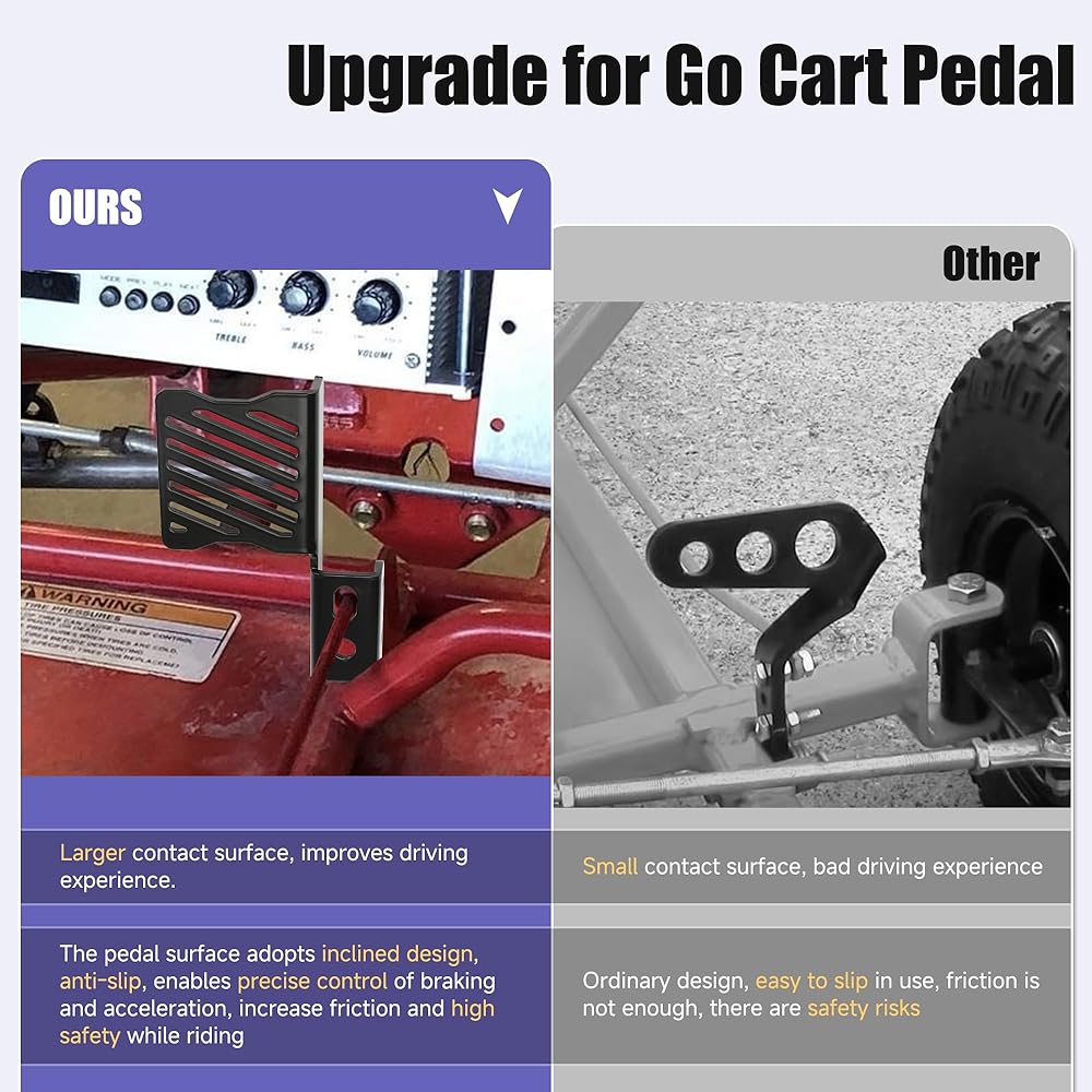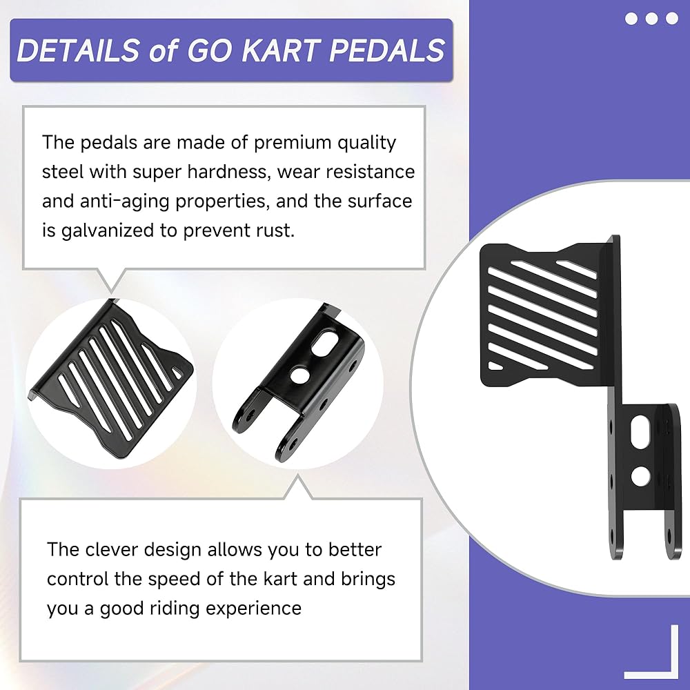معدن أكثر سمكًا: مصنوعة من معدن فائق الجودة، دواسات جو كارت عالية القوة ومتينة ومقاومة للانحناء أو التشوه