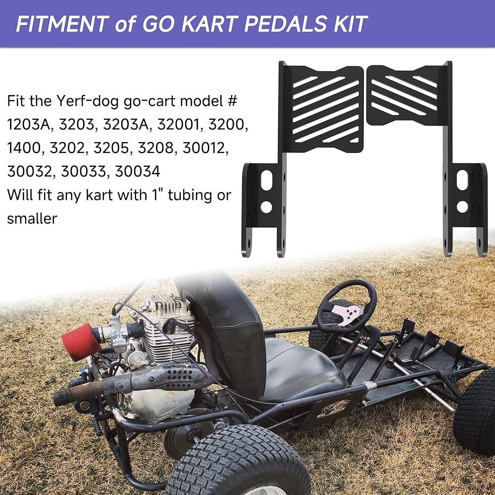 الإعداد: مجموعة دواسات Go kart مع دواسة فرامل go kart ودواسة الخانق go kart متوافقة مع أجزاء Yerf Dog go kart. الموديل #1203A، 3203، 3203A، 32001، 3200، 1400، 3202، 3205، 3208، 30012، 30032، 30033، 30034